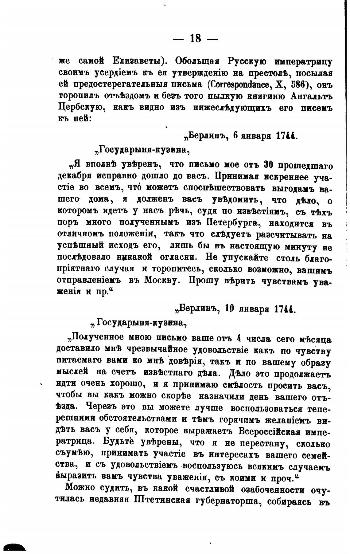 Цербскую, какъ видно изъ нижесмдующихъ его писемъ
