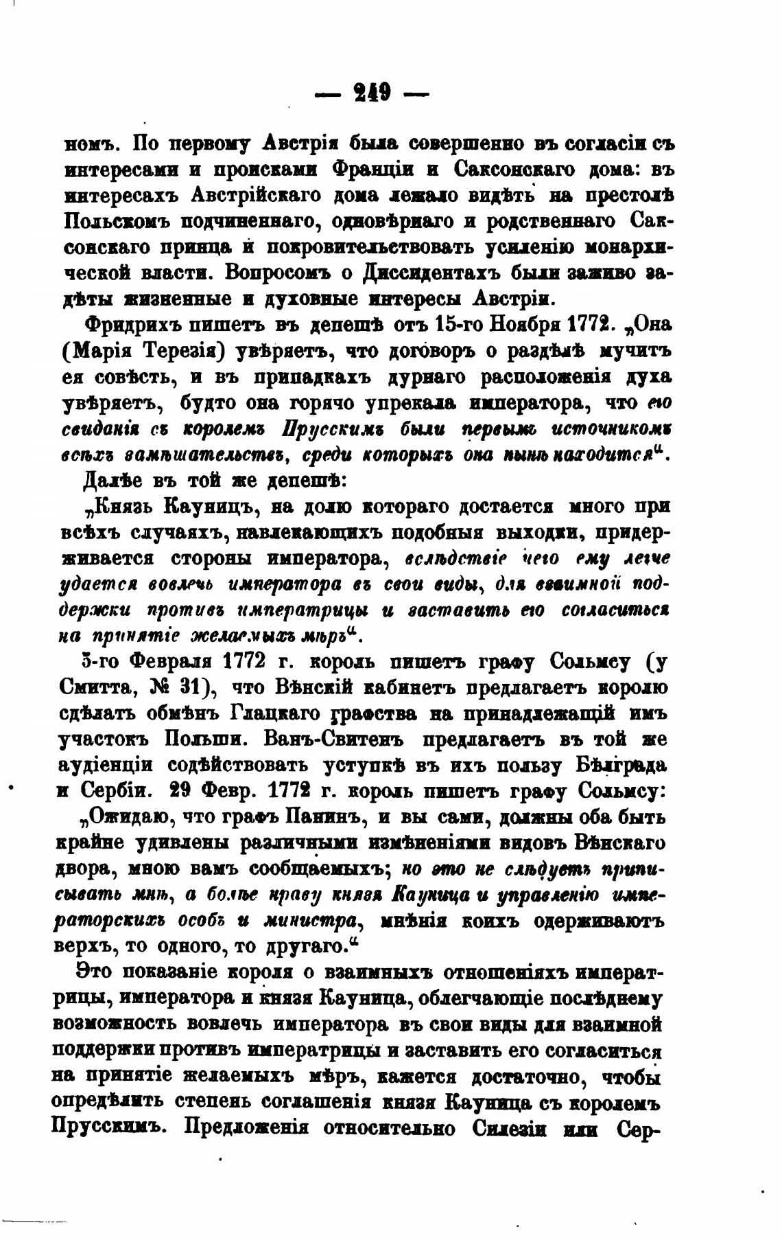Фридрихъ пишетъ въ депешј отъ 15-го Ноября 1772. тона