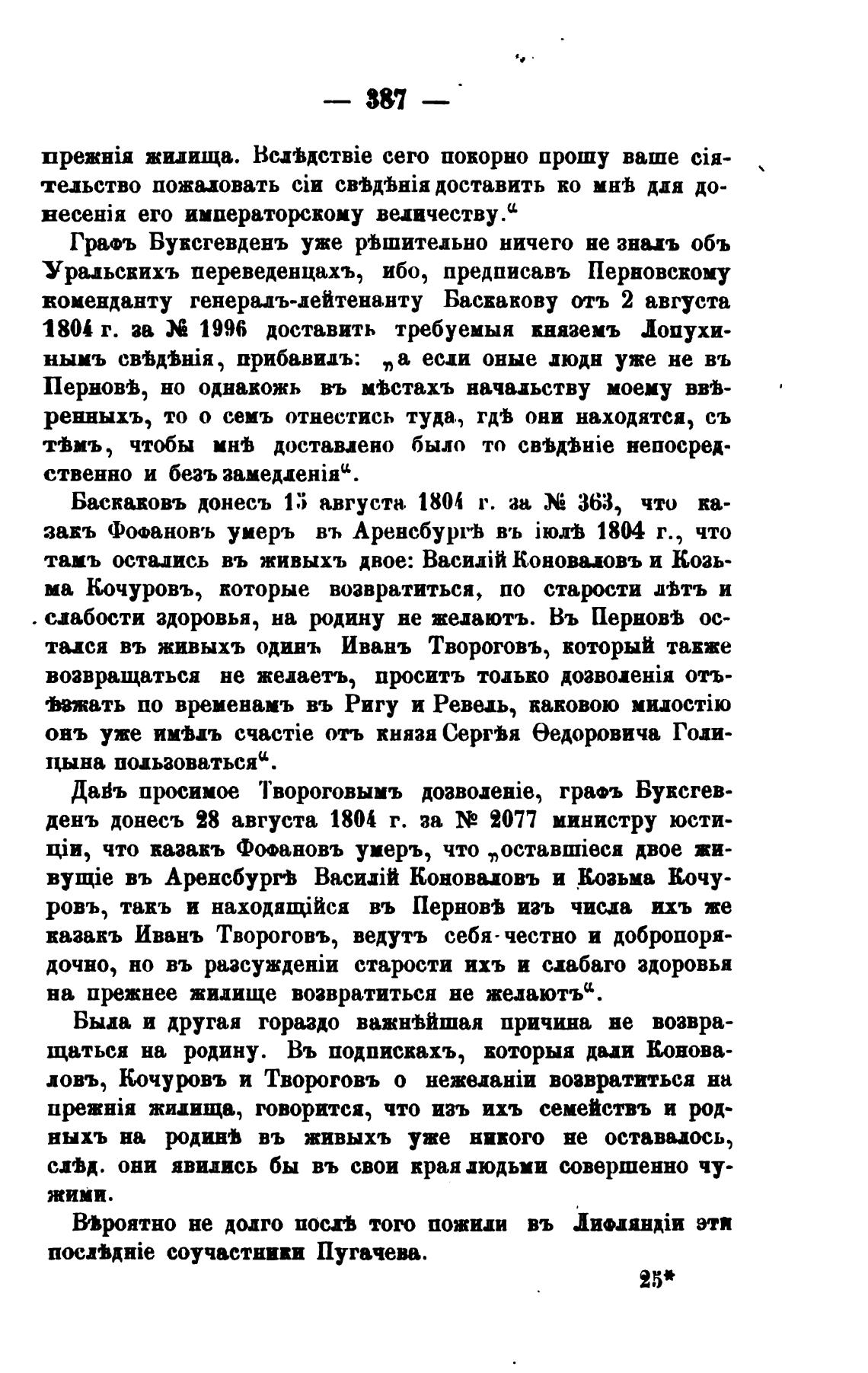 запь Фофановъ умерь въ Аренсбург•Ь въ iorb 1804 г., что