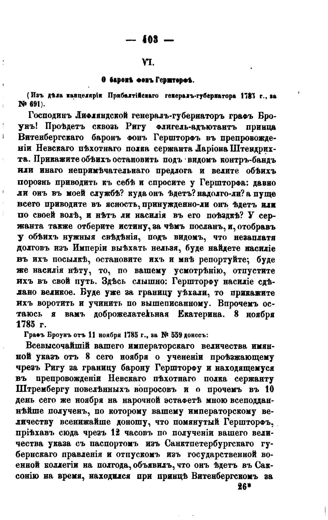 Витенбергсиаго баронъ ФОНЪ Герштор•ъ въ препровожде-
