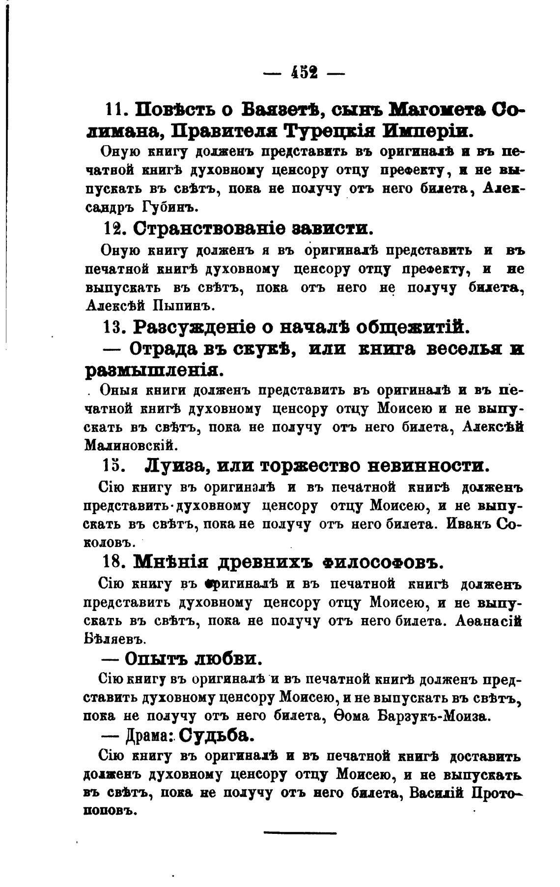 представить духовному ценсору отцу Моисею, и не выпу-