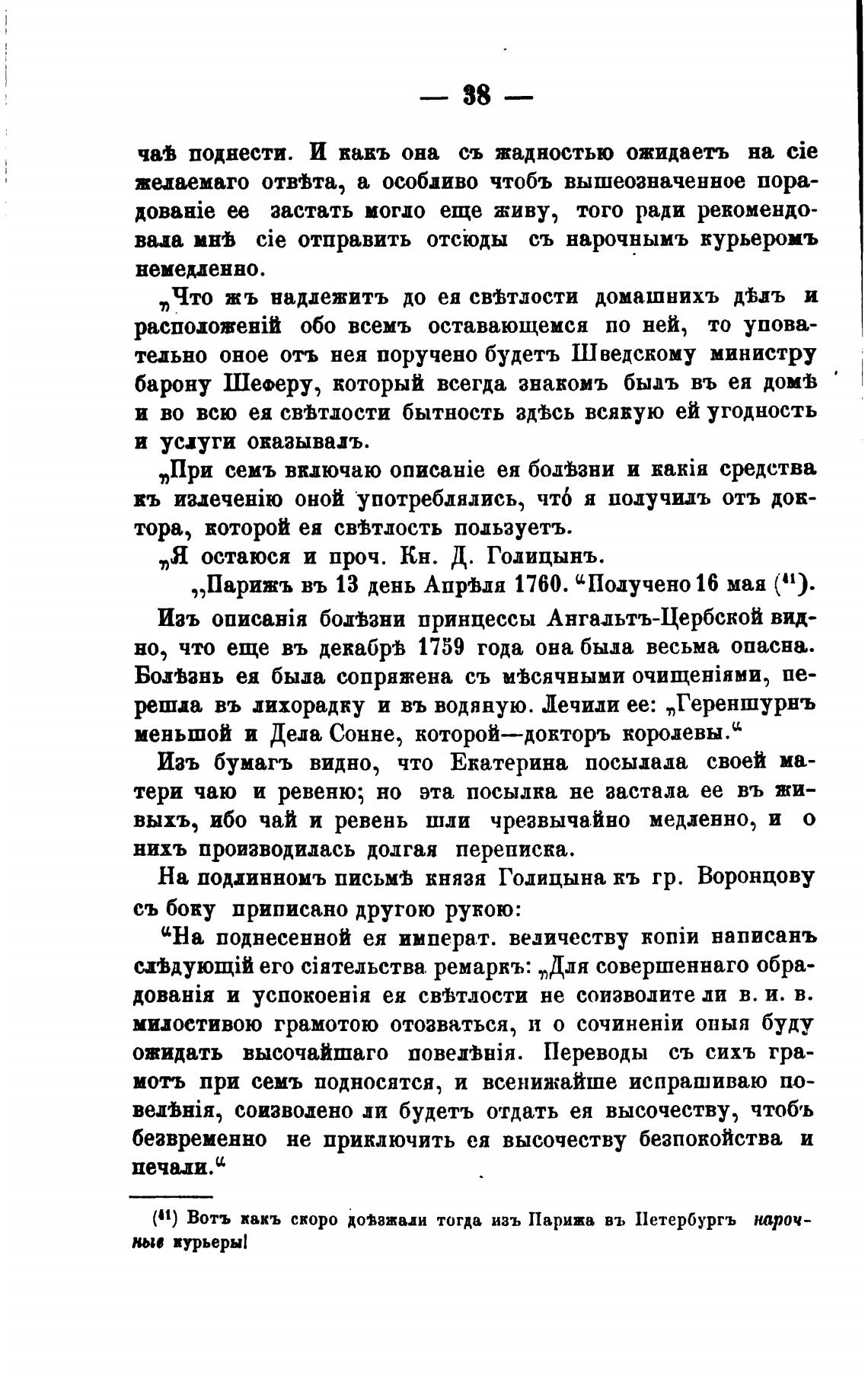 Изъ бумагъ видно, что Екатерина посылала своей ма-