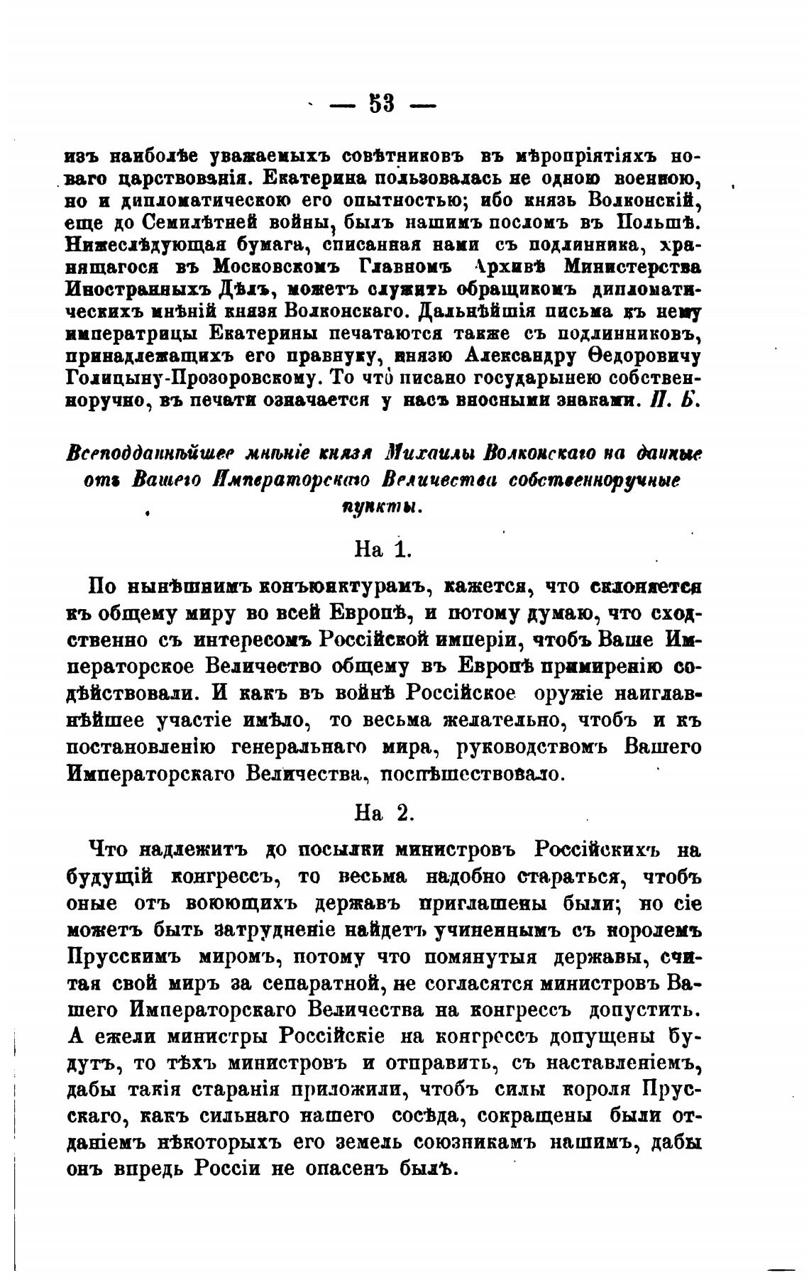 ческихъ князя Волонскаго. письма въ нем