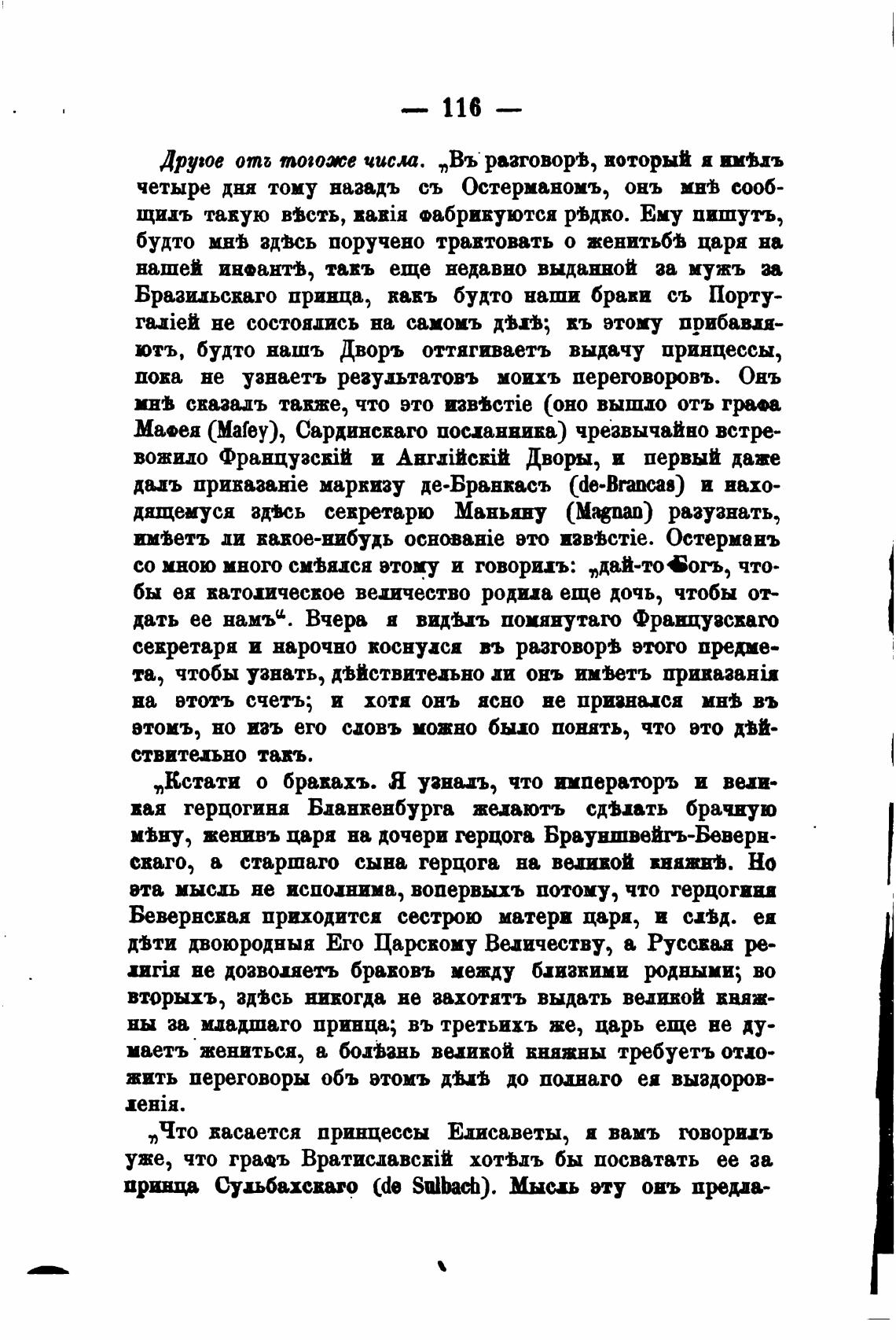 „Что васается принцессы Елисаветы, я вамъ говориль
