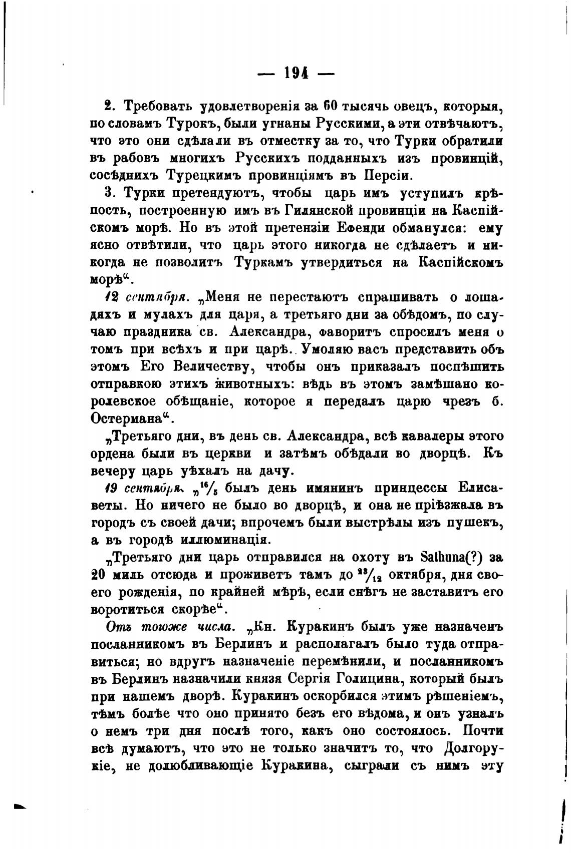 Отб тошже числа. „Кн. Куракинъ быдъ уже назначень
