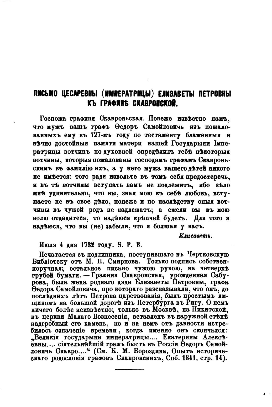 Госпожа графиня Скавроньсвая. Понеже изввстно намъ,