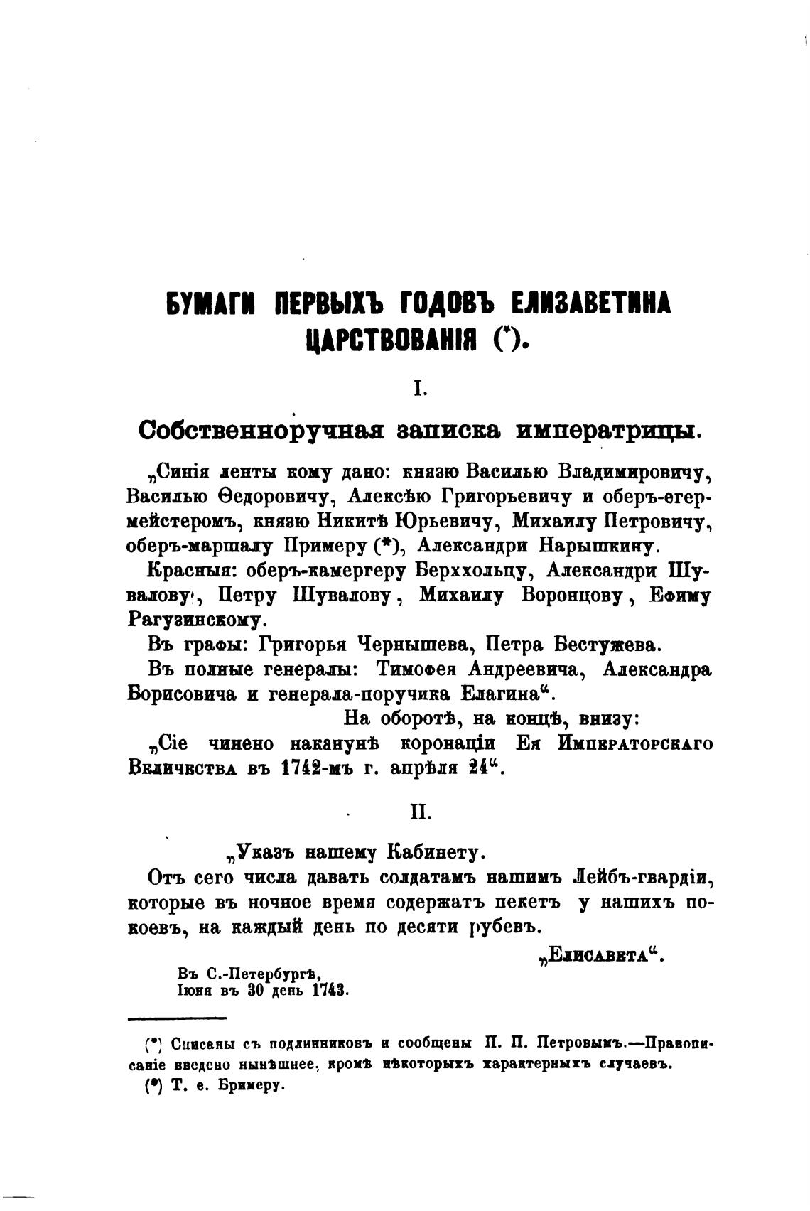 БУМАГИ пГвыхъ ГОДОВЪ ЕЛИЗАВЕТИНА