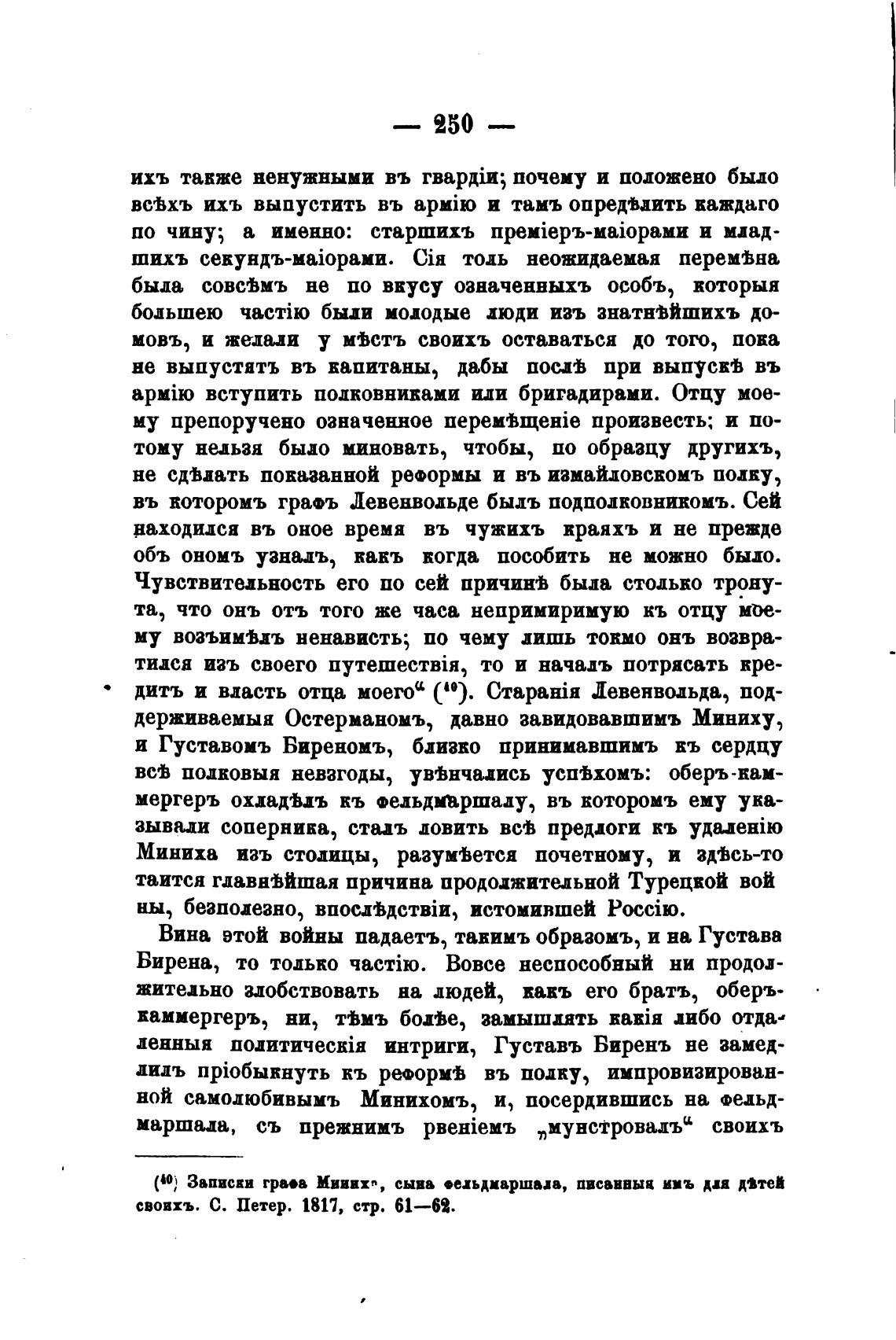 держиваемыя Остерманомъ, давно завидовавшимъ Миниху,