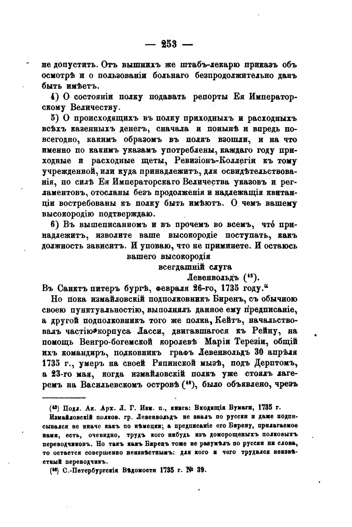 Въ Санктъ питеръ бурггВ, Феврњдя 26-го, 1735 году.“