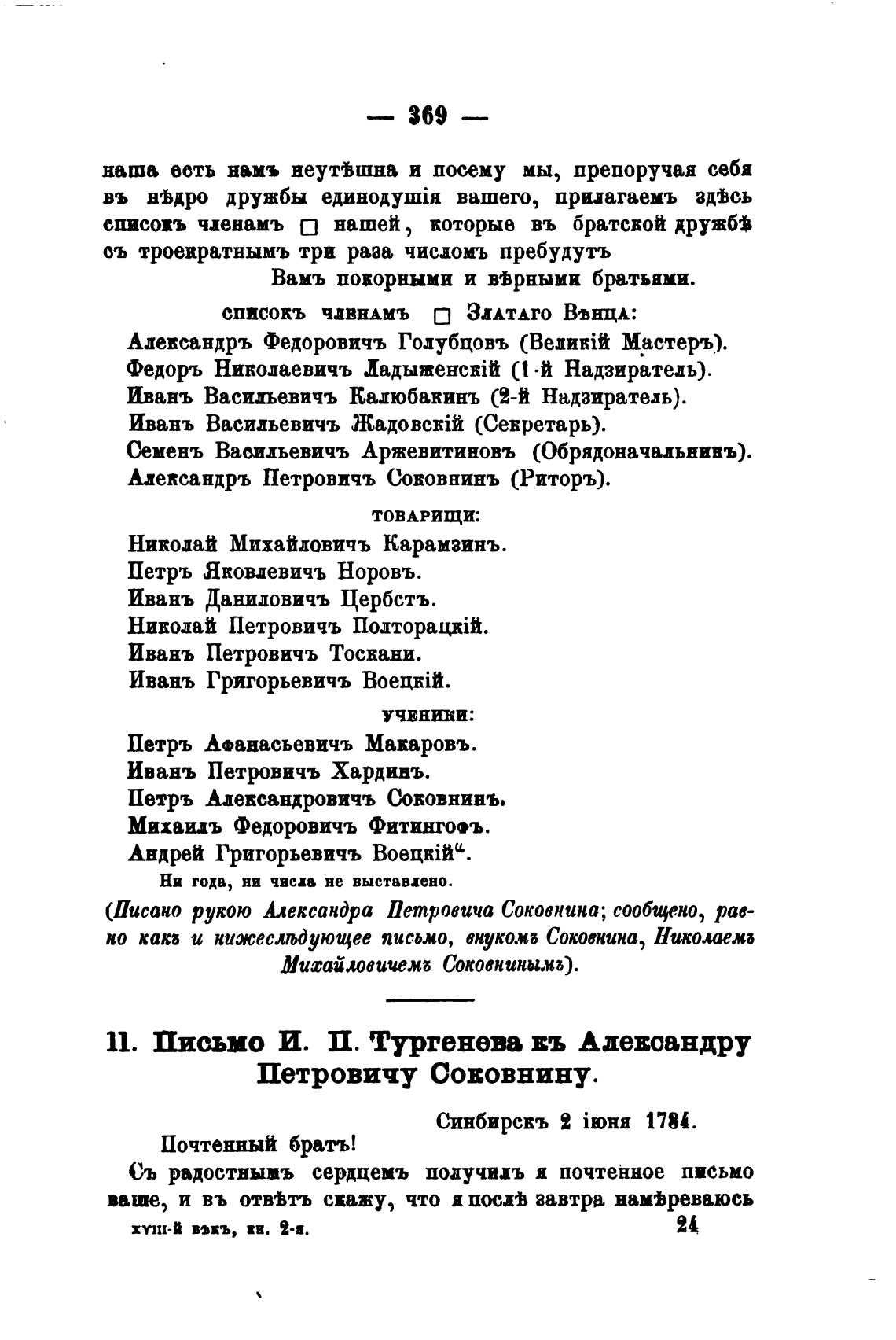 11. Письмо И. П. Тургенева въ Адевсандру
