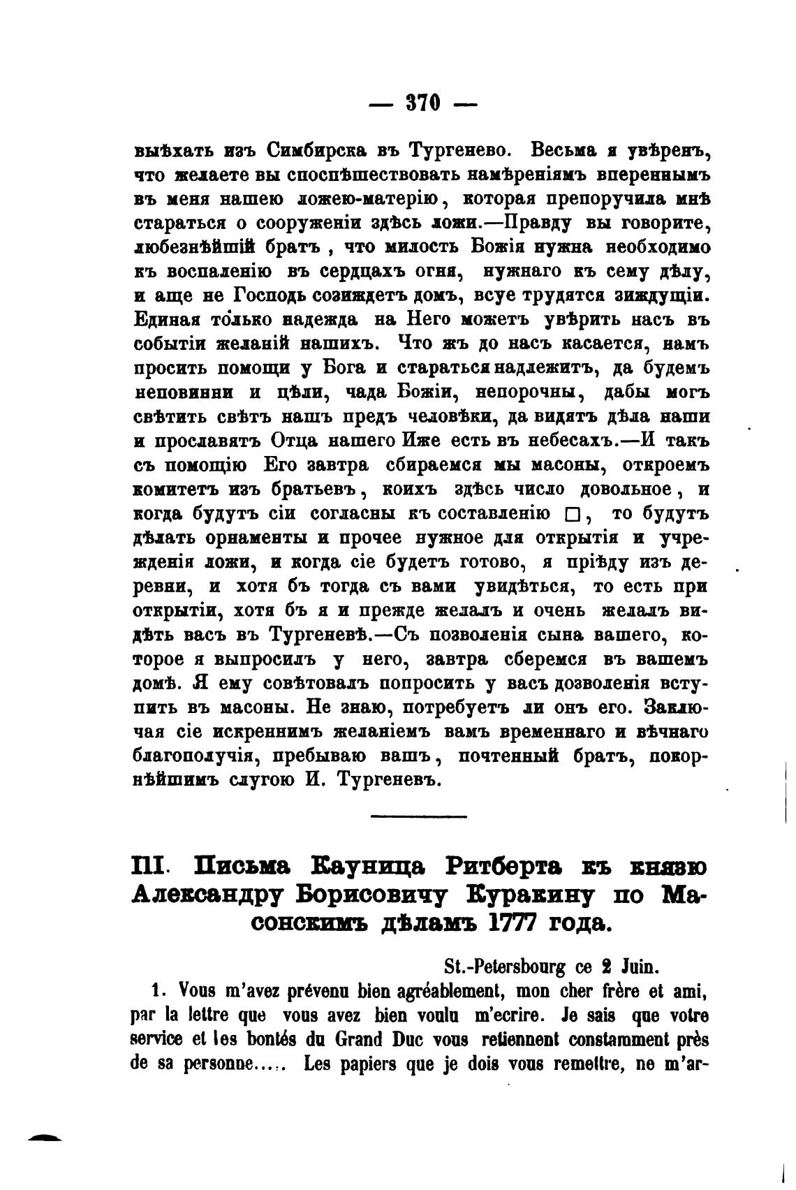 Отъ васъ въ ТургеневеВ.—Съ nooozeHiR сына вашего, ко-