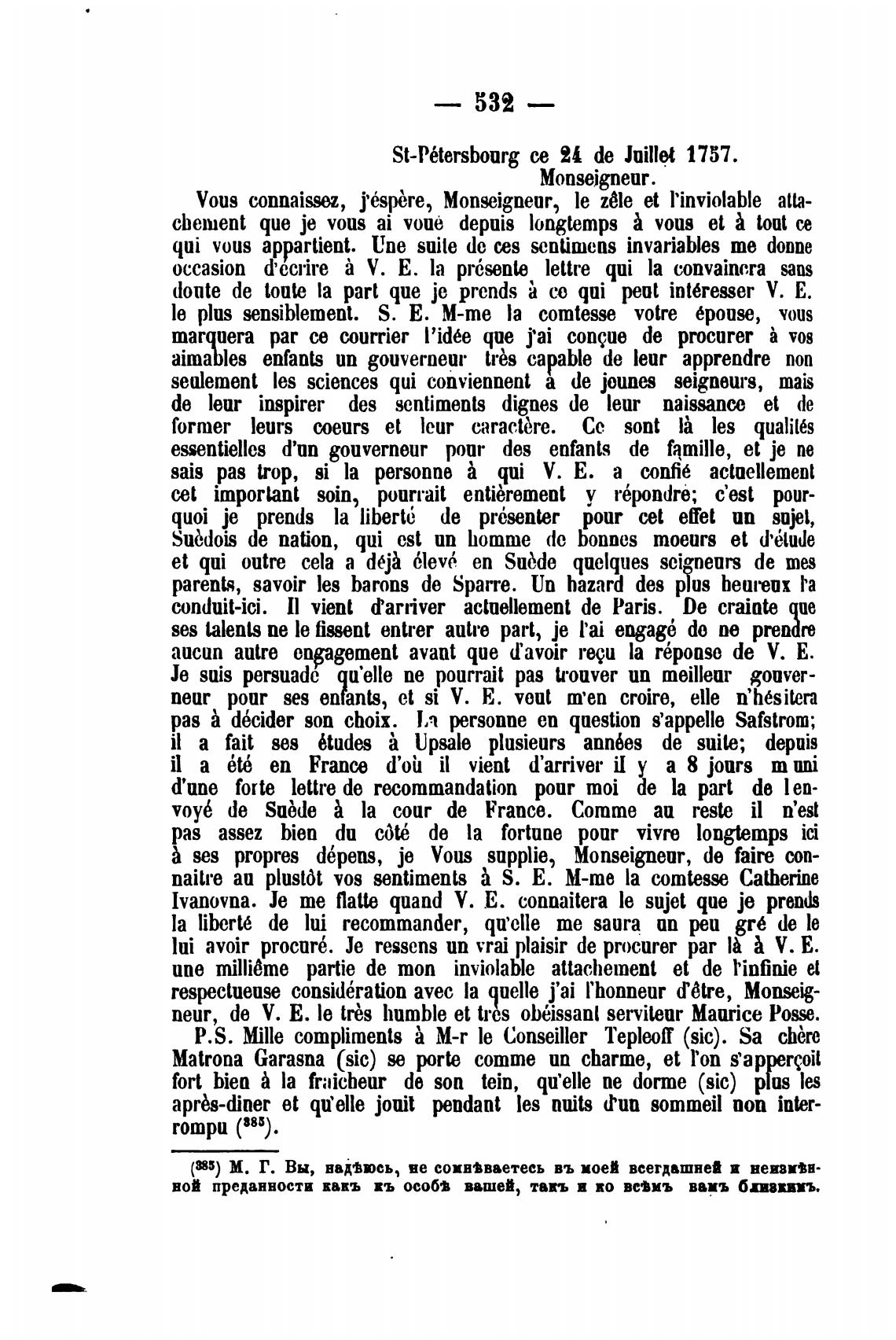 P.S. Mille compliments М-г [е Conseiller Тер1еоТ (sic). Sa chbre