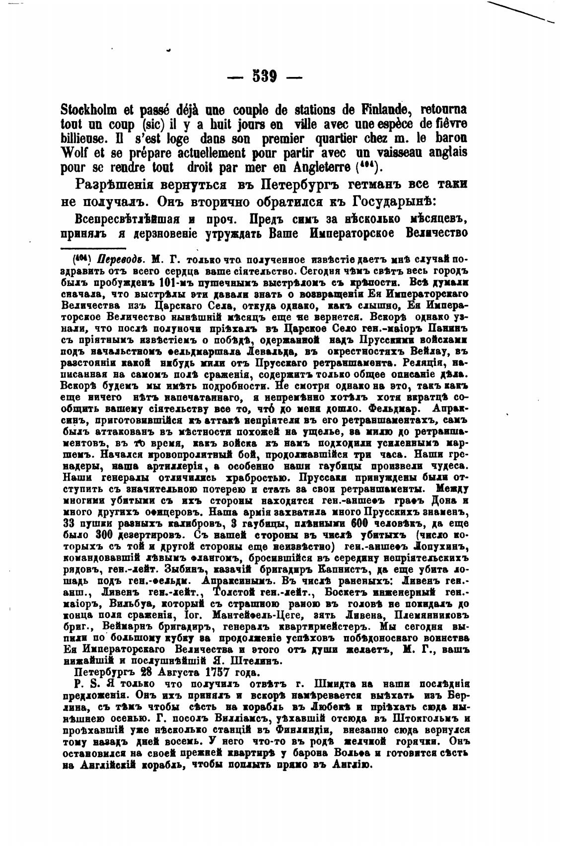 Петербурть 28 Августа 1757 года.