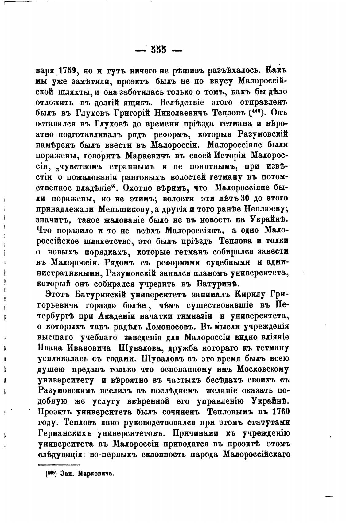Проэктъ университета быль сочинень Тепловымъ въ 1760