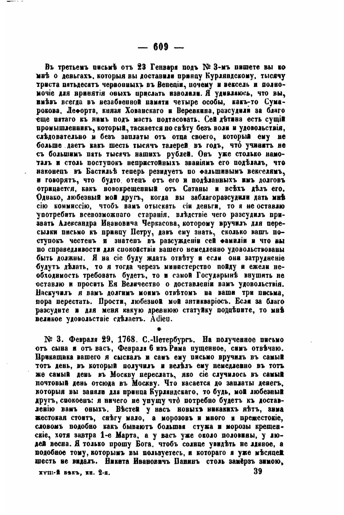 N2 З. Февраля 29, 1768. С.-Иетербургъ. На полученное письмо