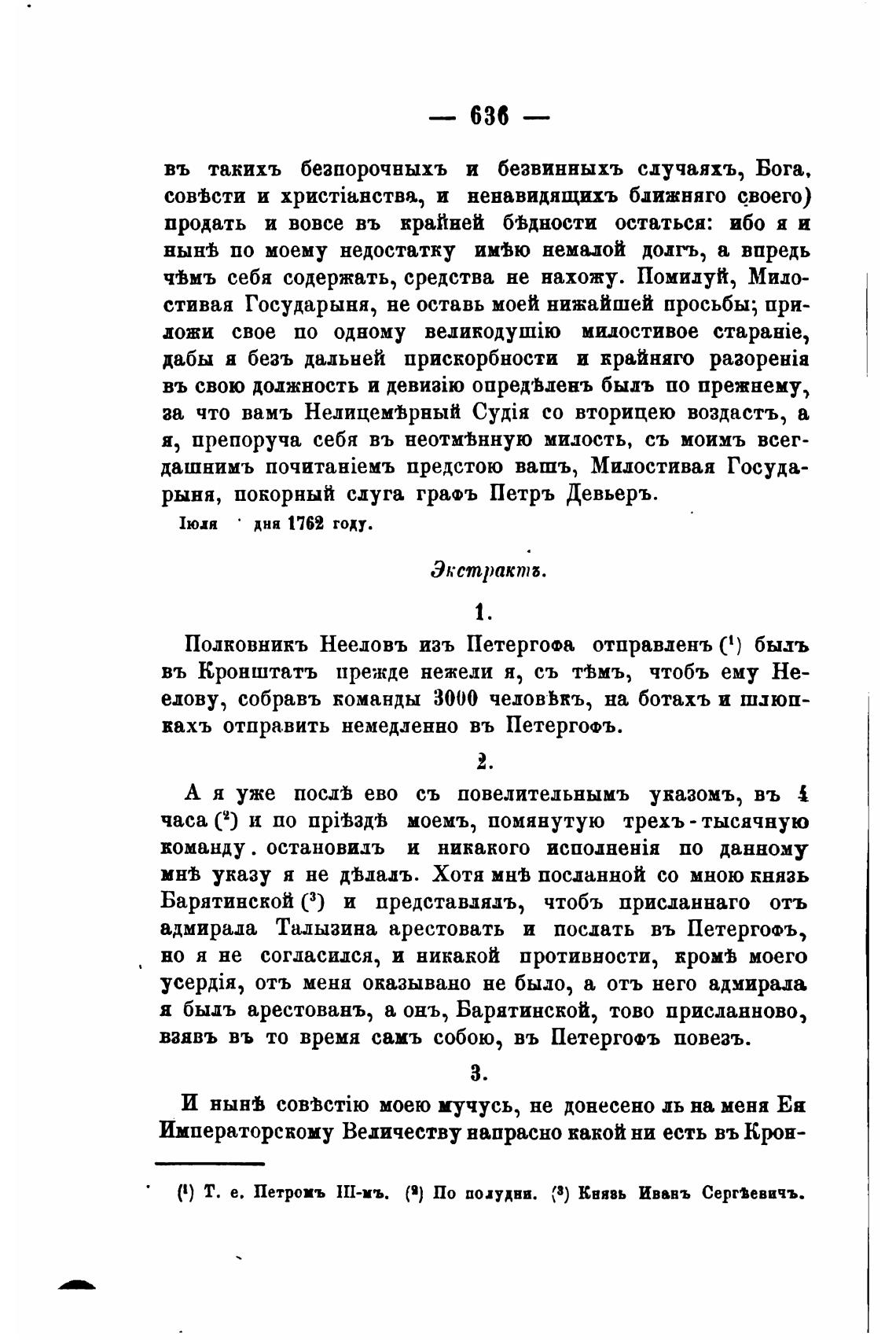 (1) Т. е. Петромъ Ш-мъ. (в) По полудни. (3) Квявь Ивавъ Серг•евичъ.