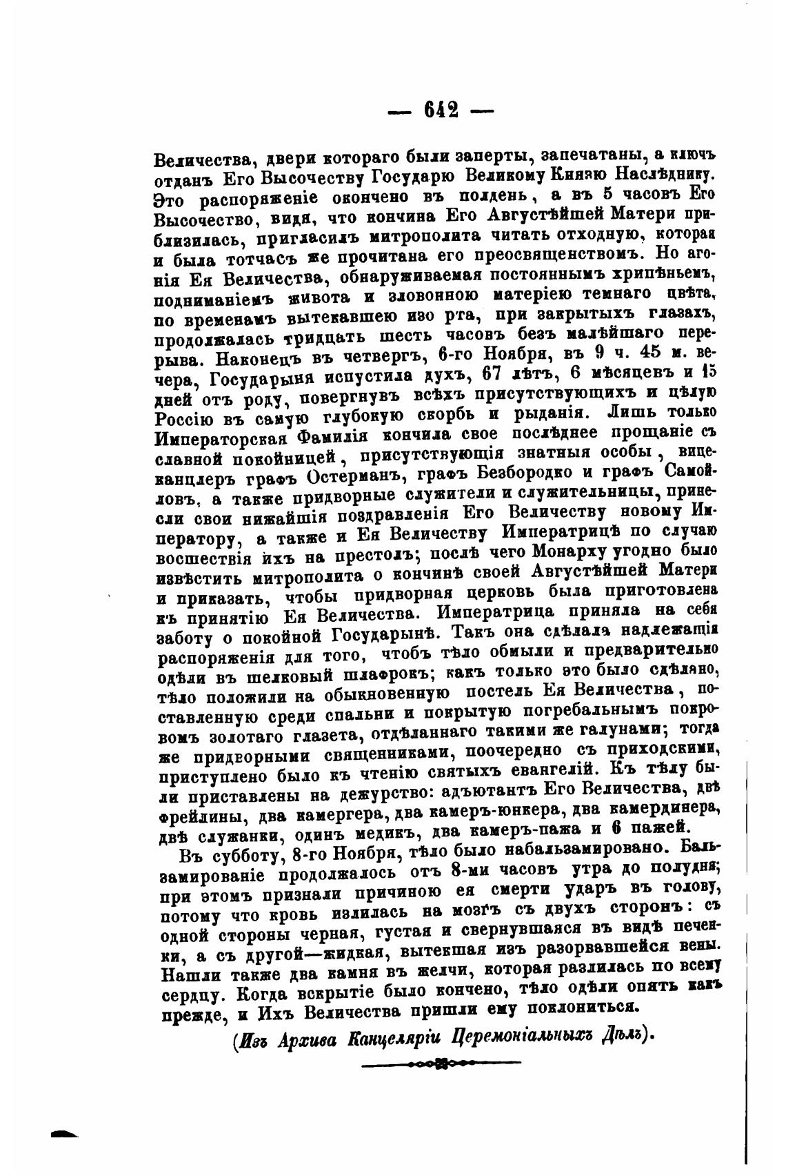 Императорская вончила свое посх%днее съ