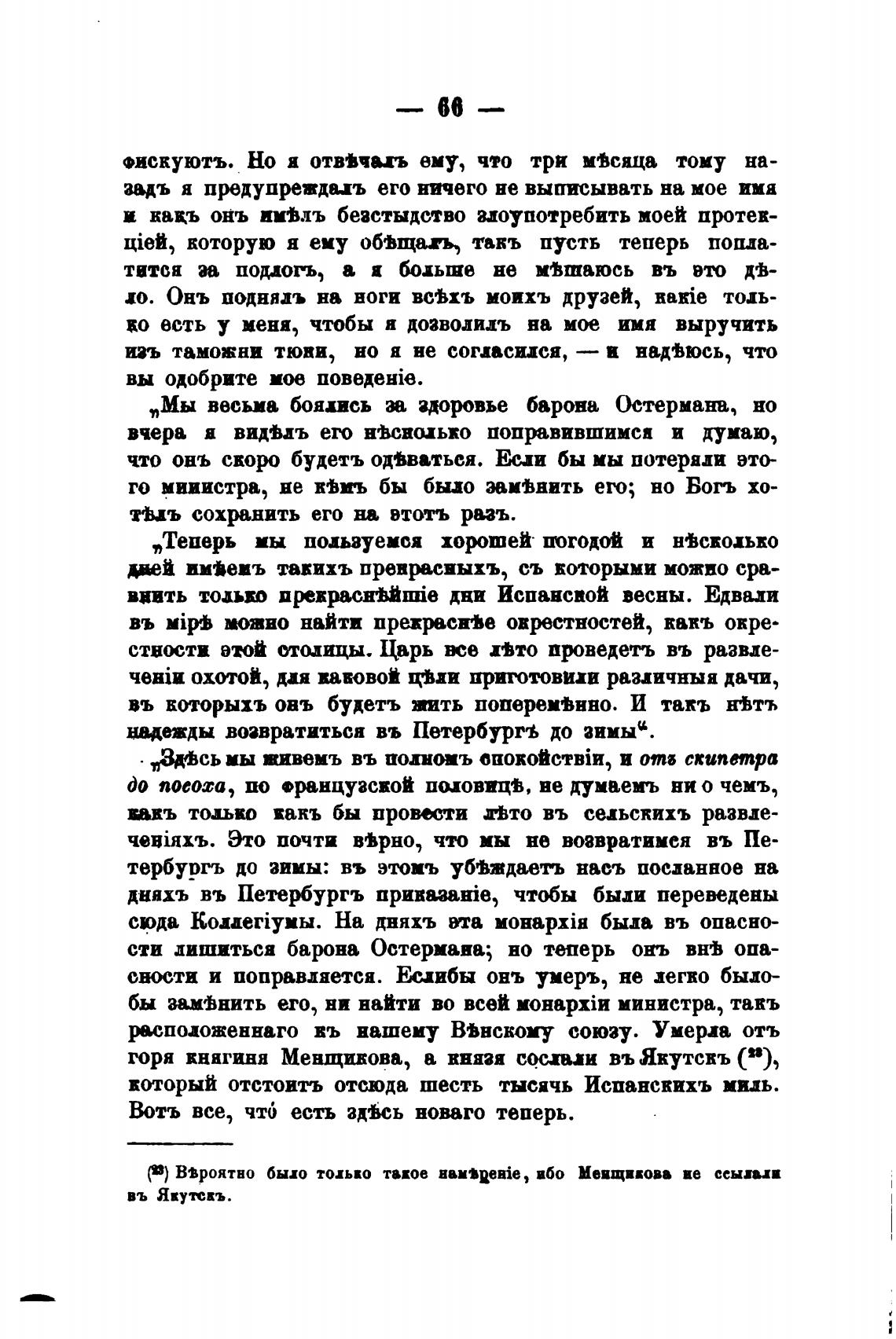 „Мы весьма боялись здоровье барона Остермана, но