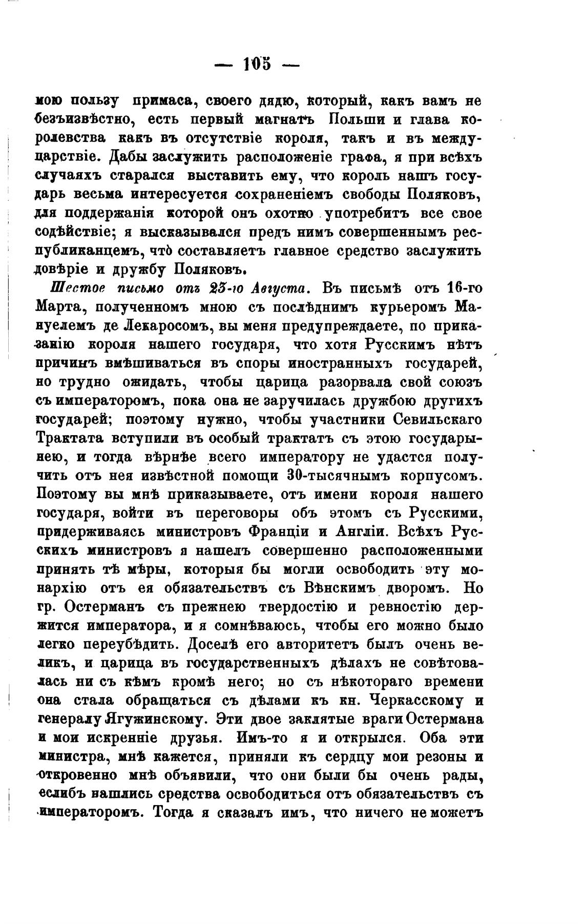 Шестое письмо от; 25-го Августа. Въ письм•Ь отъ 16-го