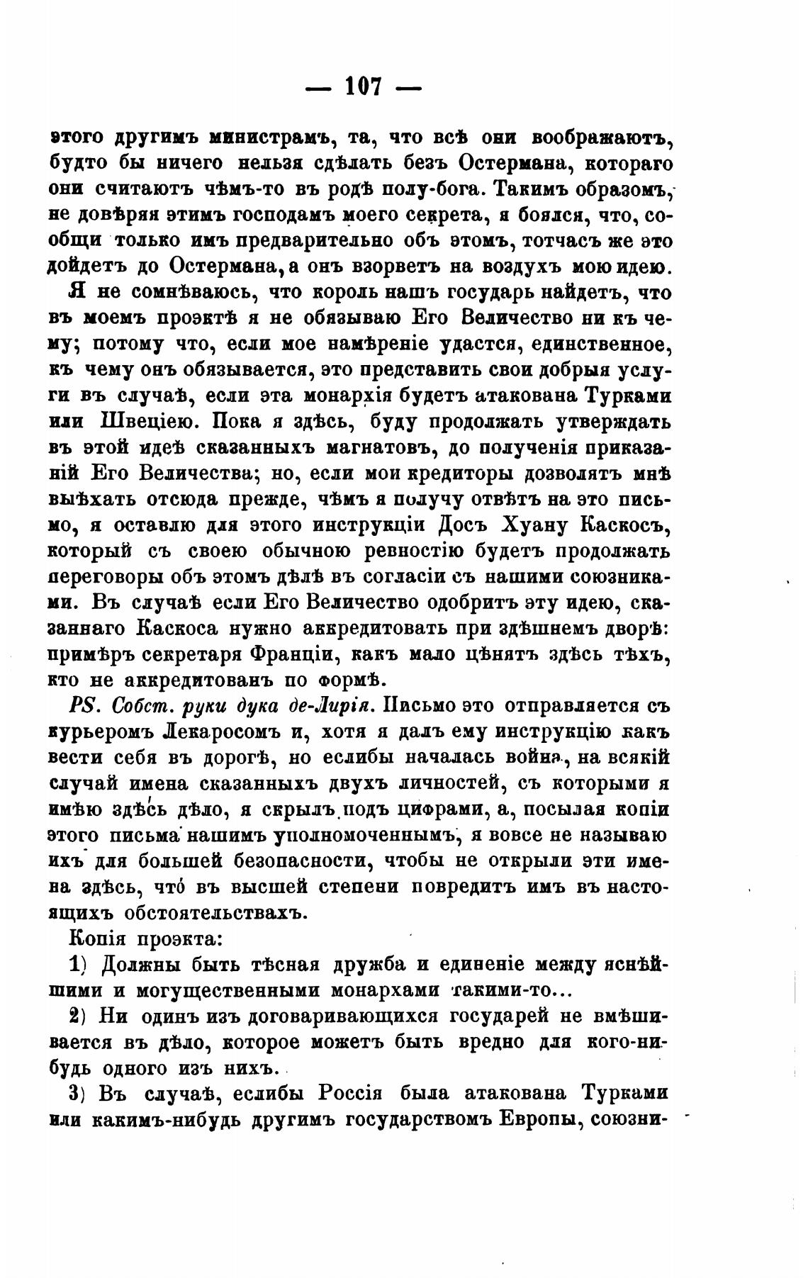 PS. Собст. руки дука Де-Јирй. 11псьмо это отправляется съ