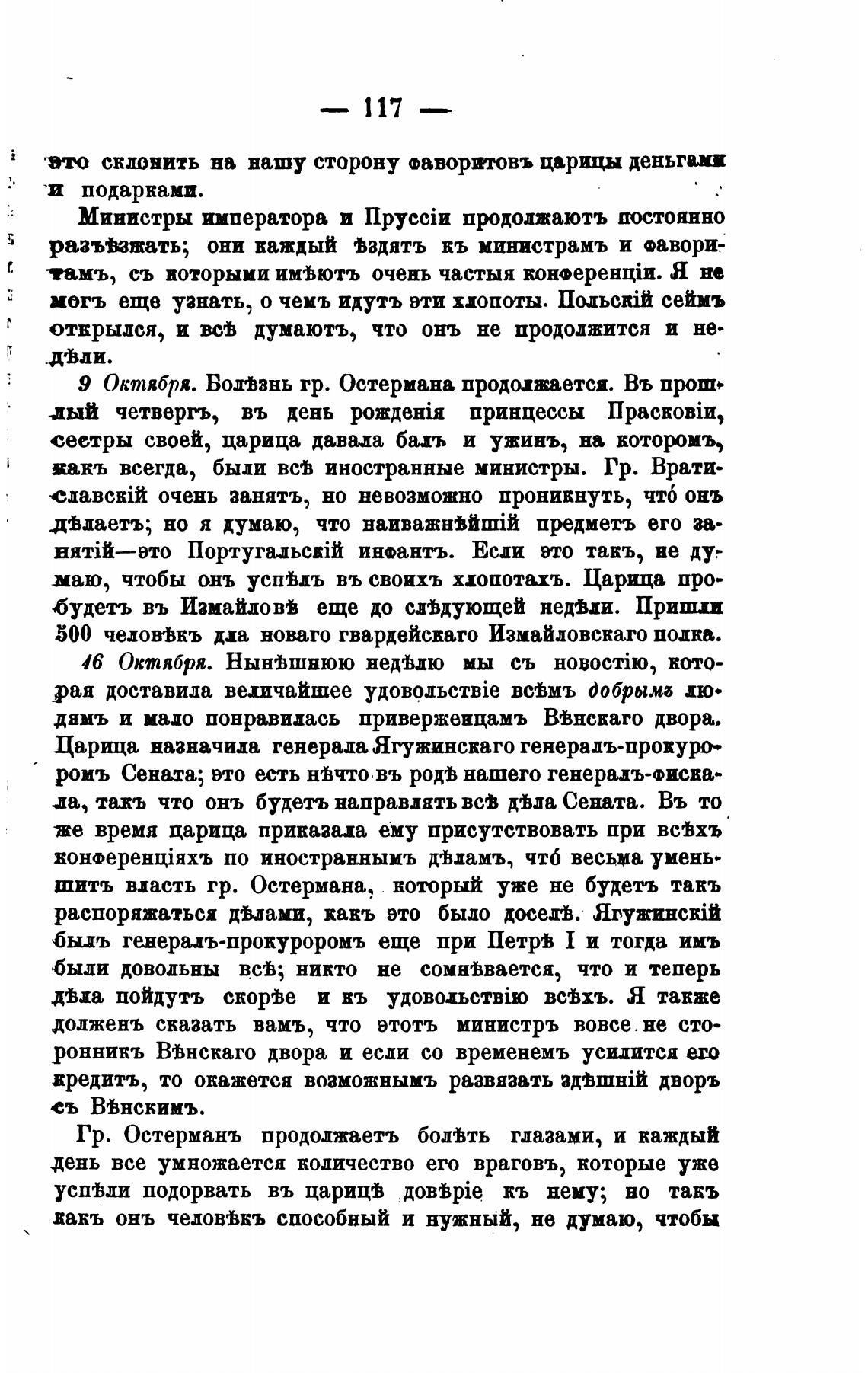 9 Октября. Богвзнь гр. Остермана продолжается. Въ проо