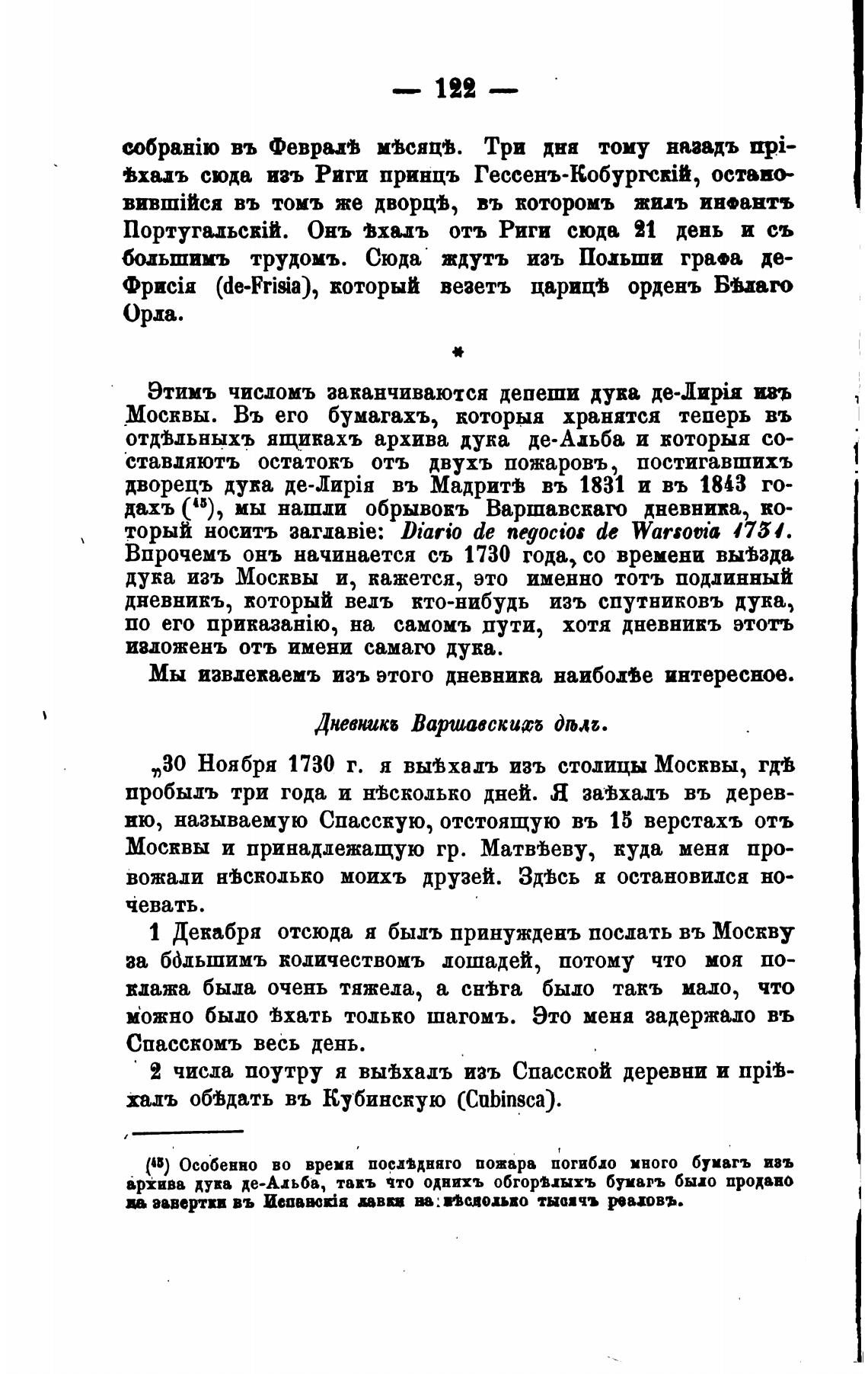 Впрочемъ онъ начинается съ 1730 года, со времени вывзда