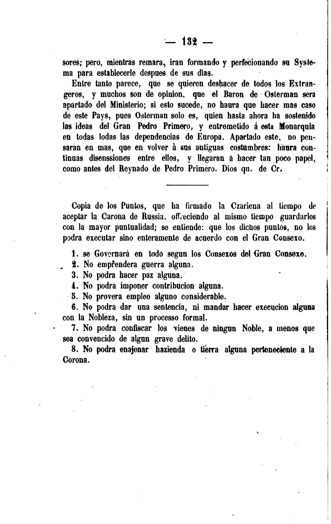 Copia de los Puntos, que ha firanado la Czariena al tietnpo de