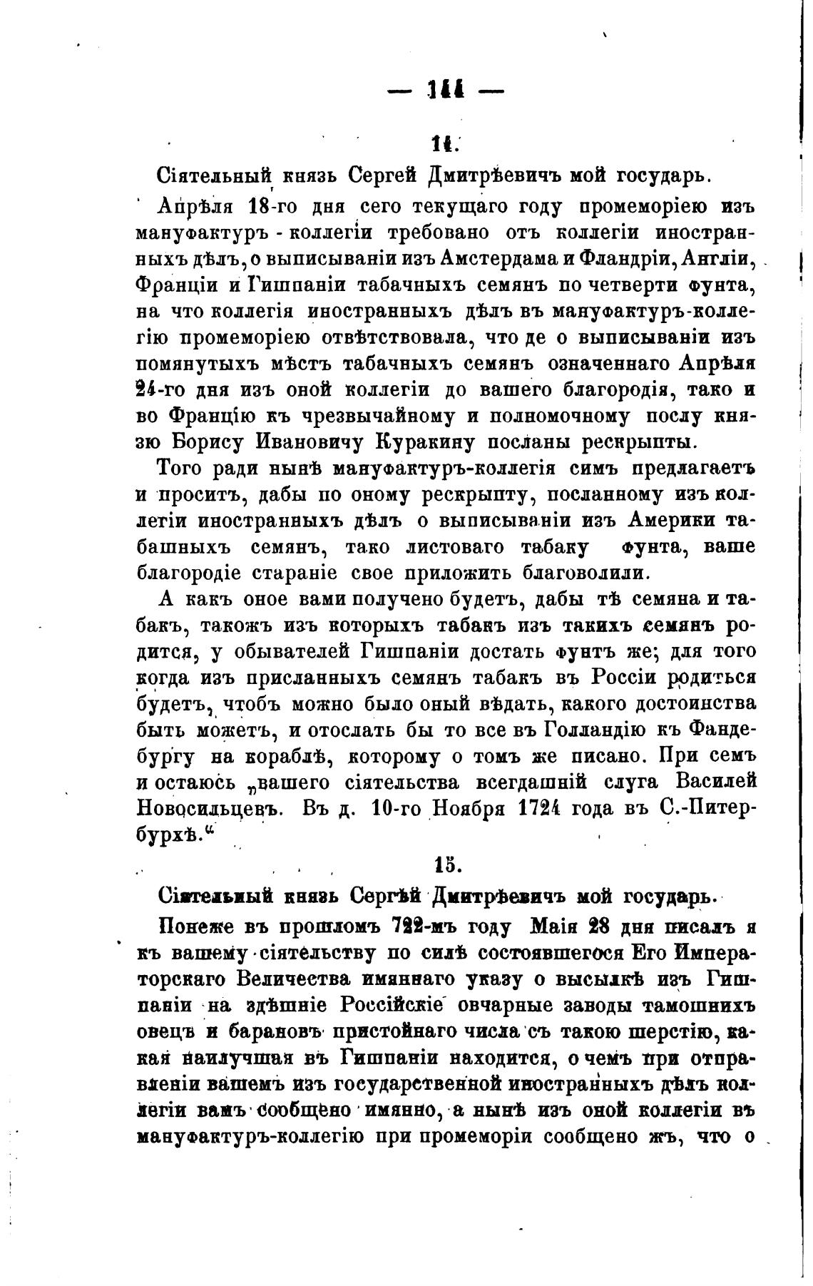 Новосидьцевъ. Въ д. 10-го Ноября 1724 года въ С.-Питер-