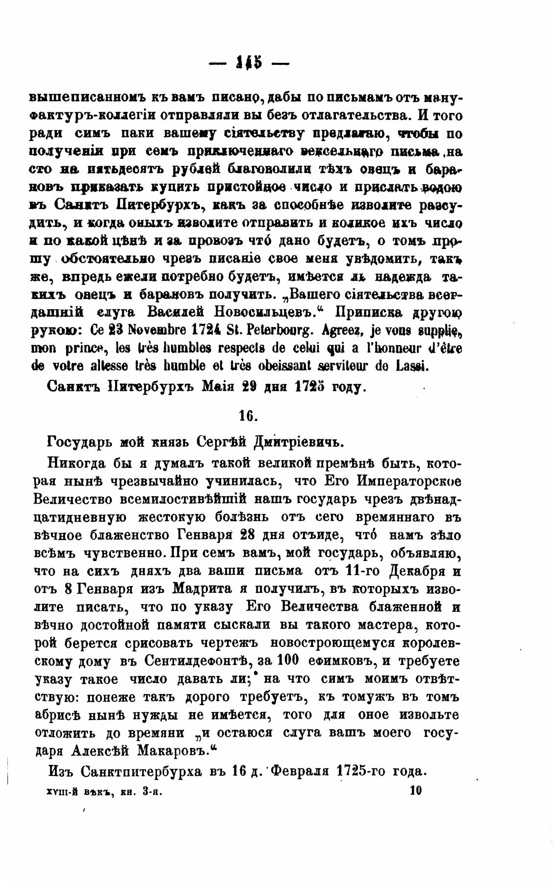 Изъ Санктпитербурха въ 16 д. • Февраля 1725-го года.