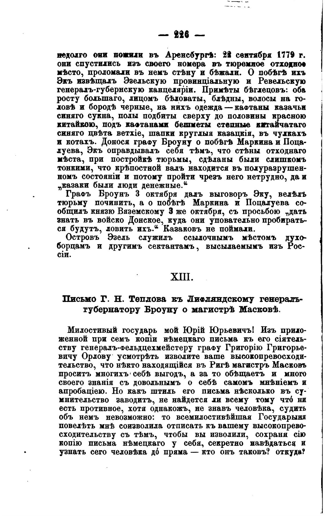 и котахъ. Донося гра•у Броуну о побьгь Маркина и Поца-