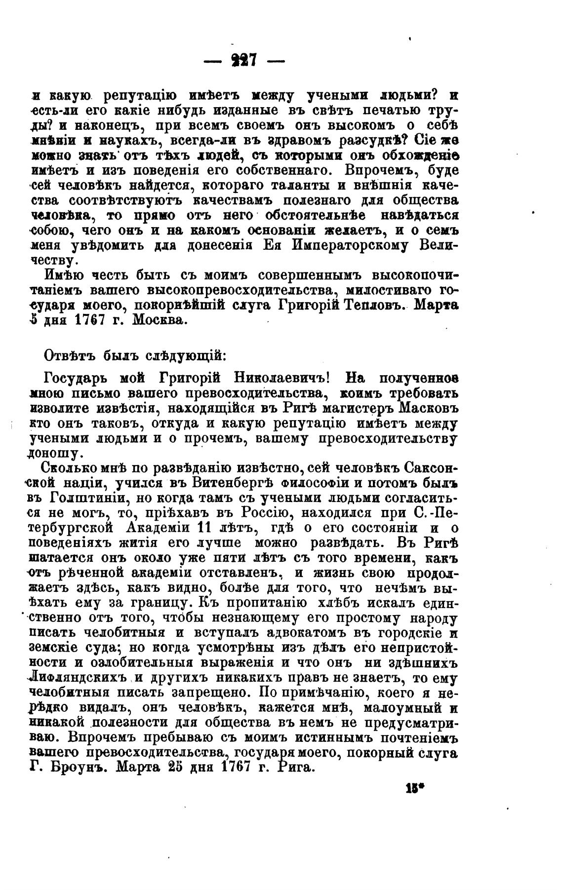 Г. Броунъ. Марта 25 дня 1767 г. Рига.