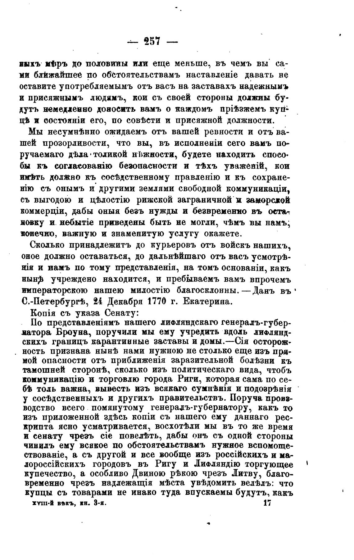 С.-ПетербуррВ, 24 Декабря 1770 г. Екатерина.