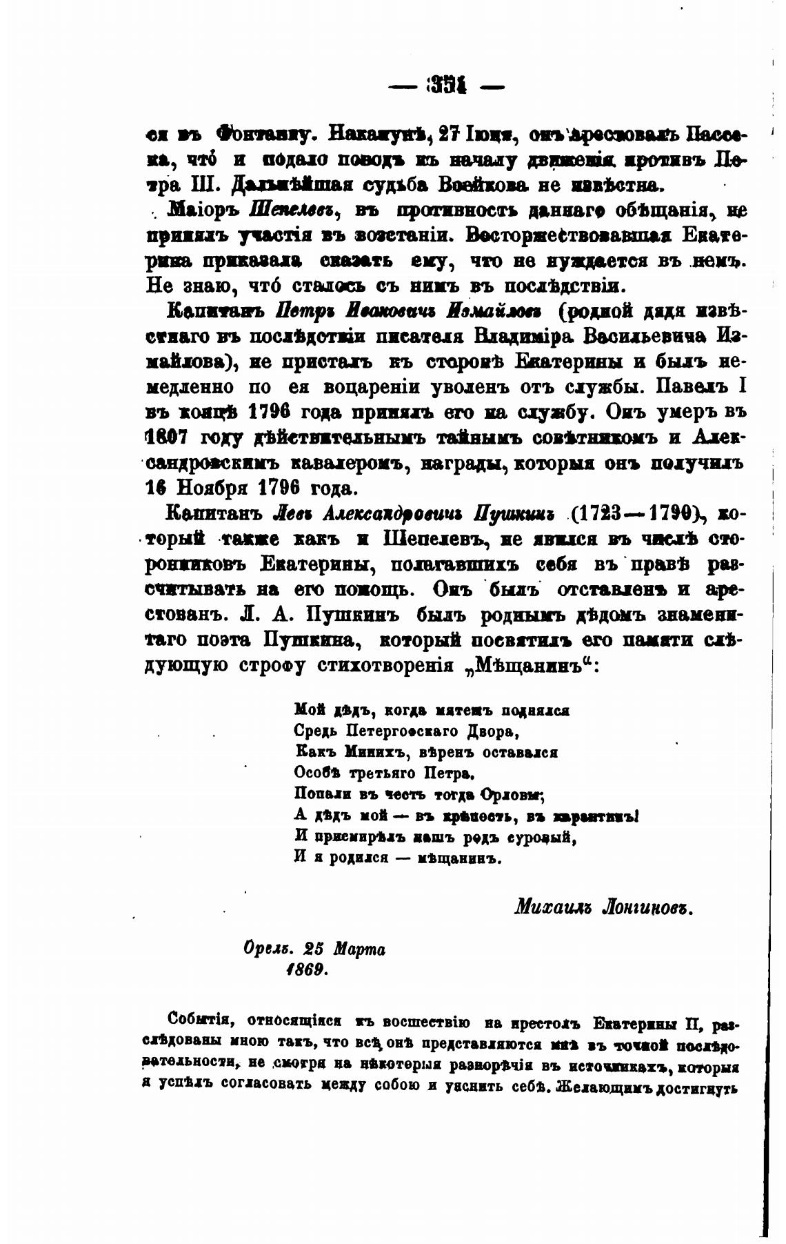 стованъ. Л. А. Пушкинъ быль роджыть двднъ анамени-