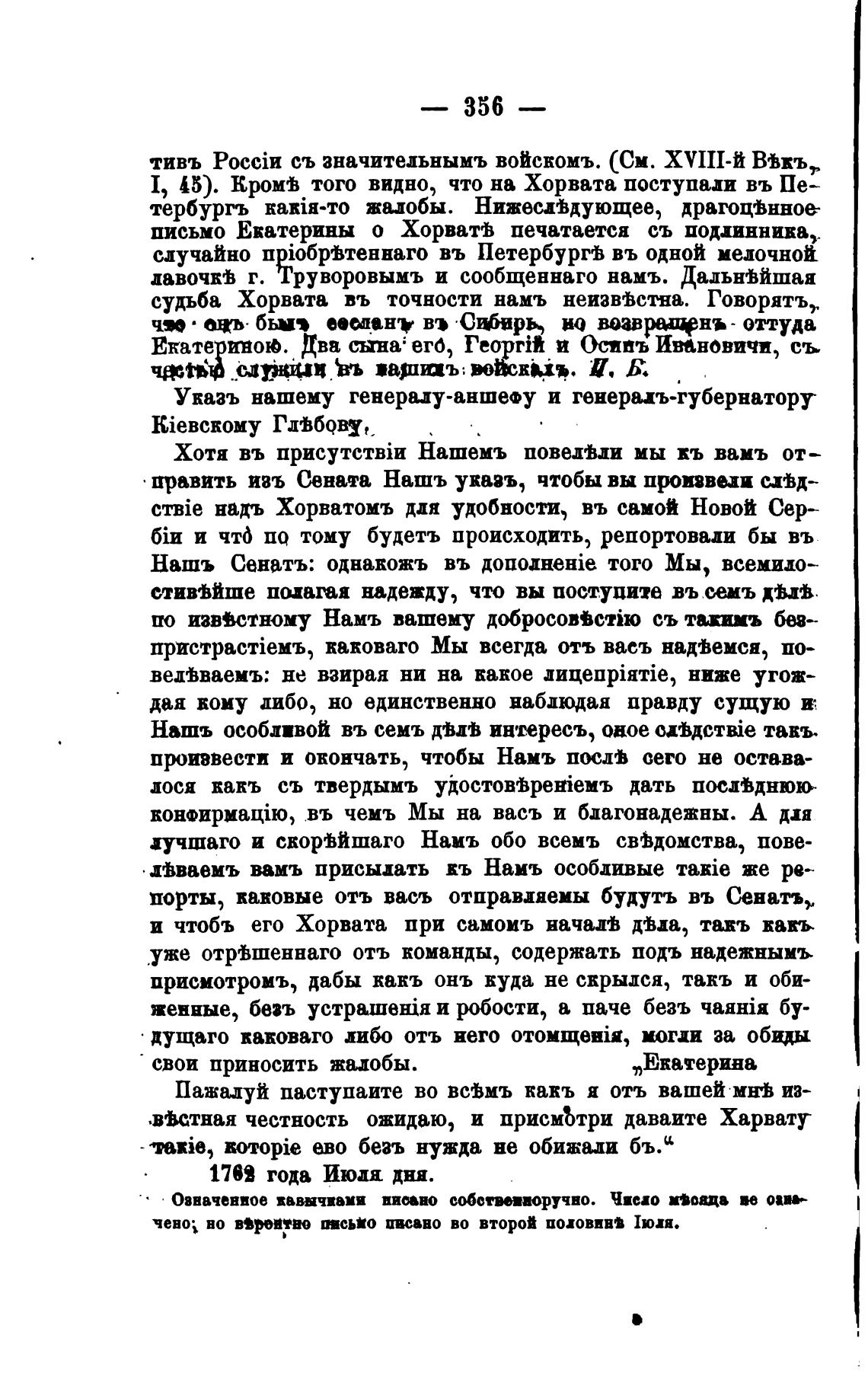 письмо Екатерины о ХорватВ печатается съ подлиннииа,.