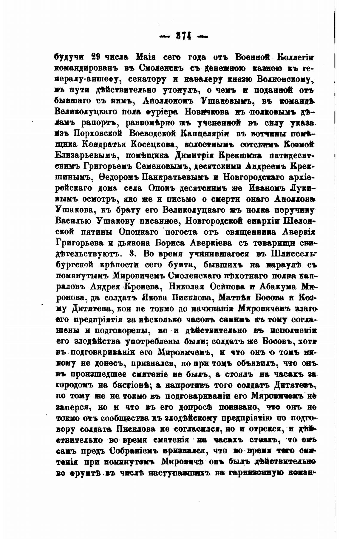 NHia при поминутомъ Мировичј овь быгь Ойивитиьио