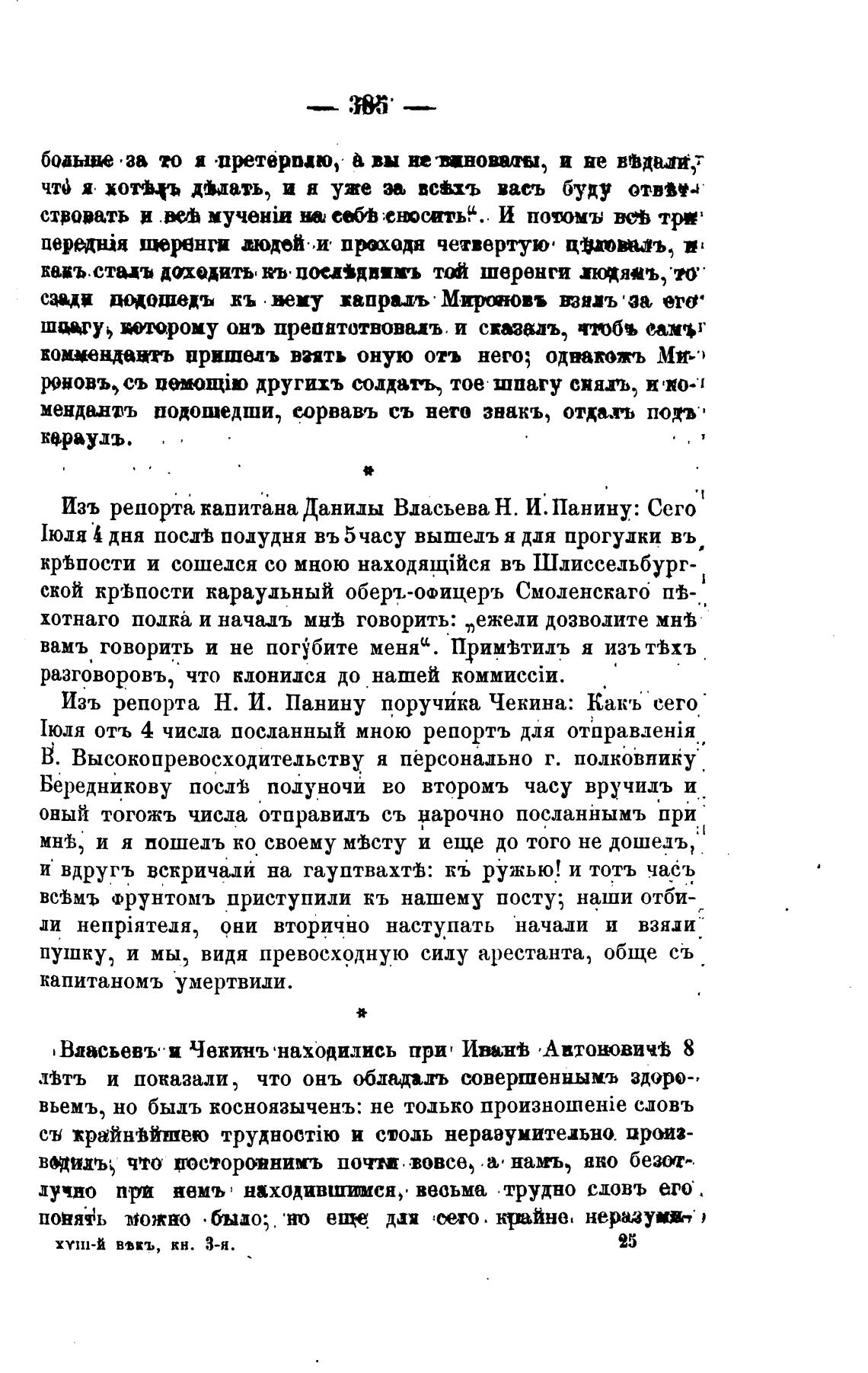 Изъ репорта Н. И. Панину поручЙка Чекина: Какъ сего