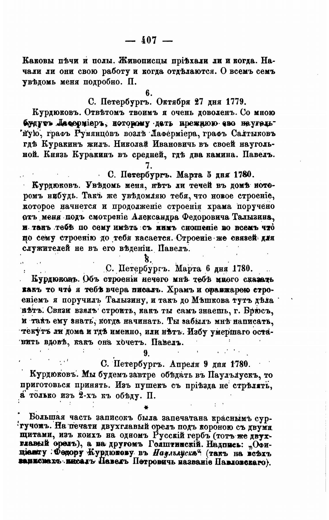 О. Петербургъ. Апреля 9 двя 1•780.