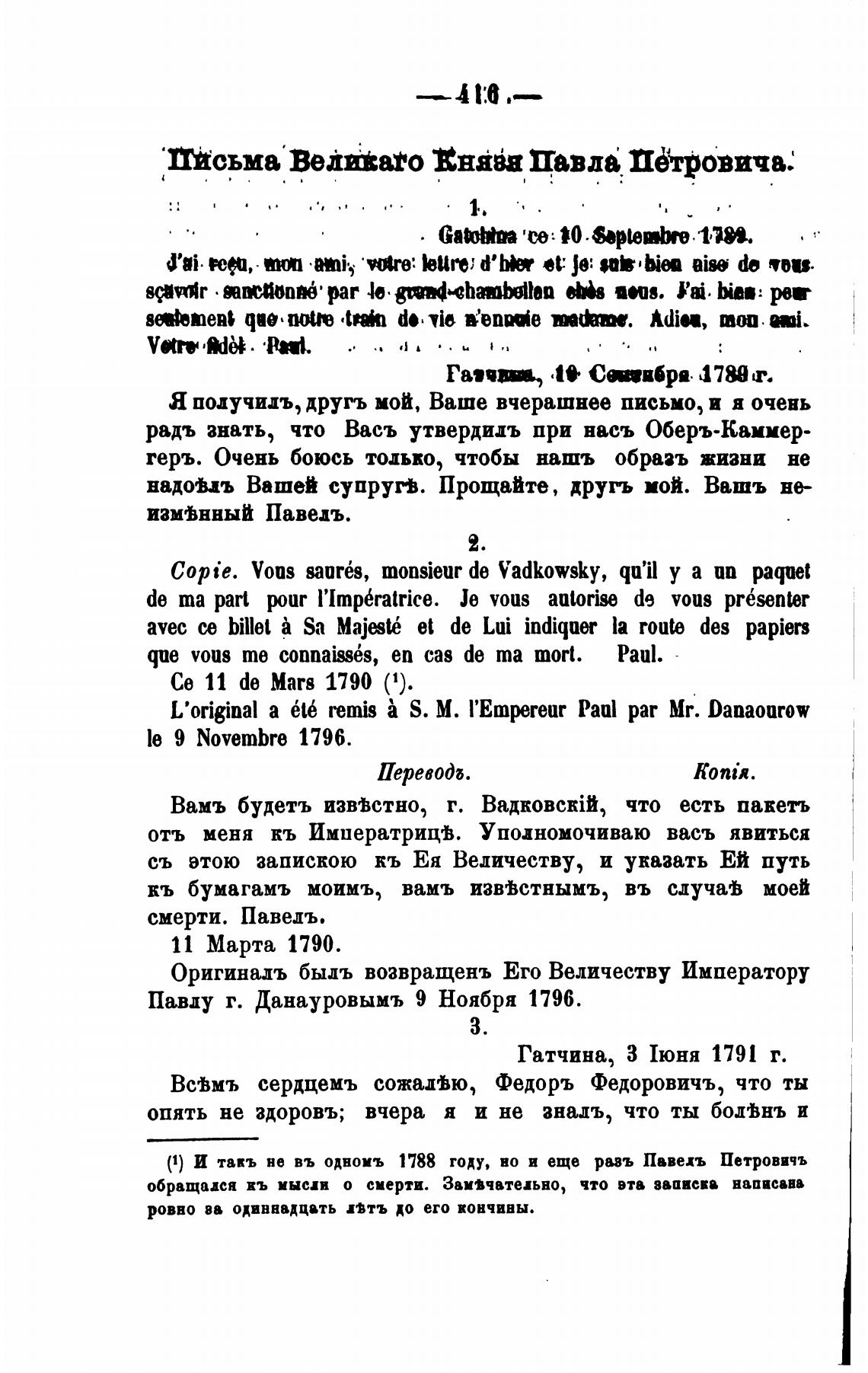 L'original а 6t6 remis S. М. l'Empereur Paul par мс. Danaoarow
