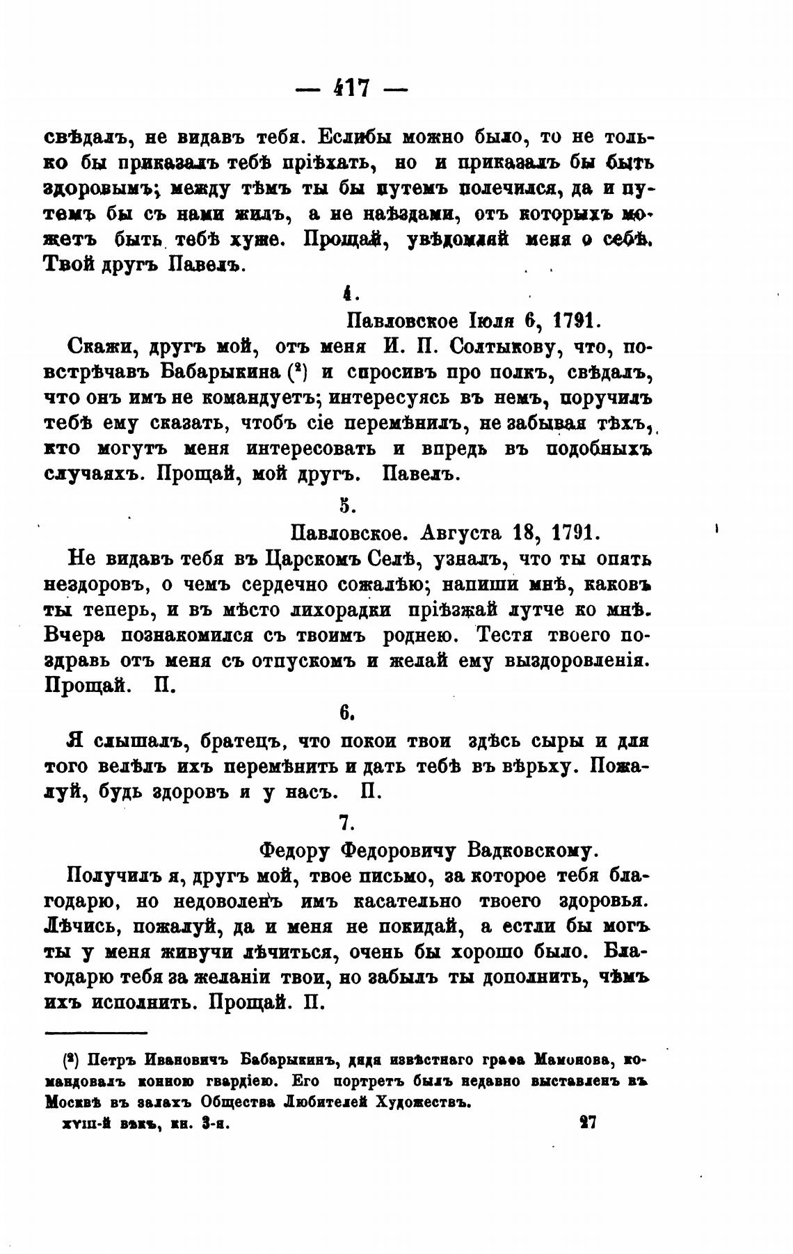 встрјчавъ Бабарыкина С) и спросивъ про полжъ, свгвдиъ,