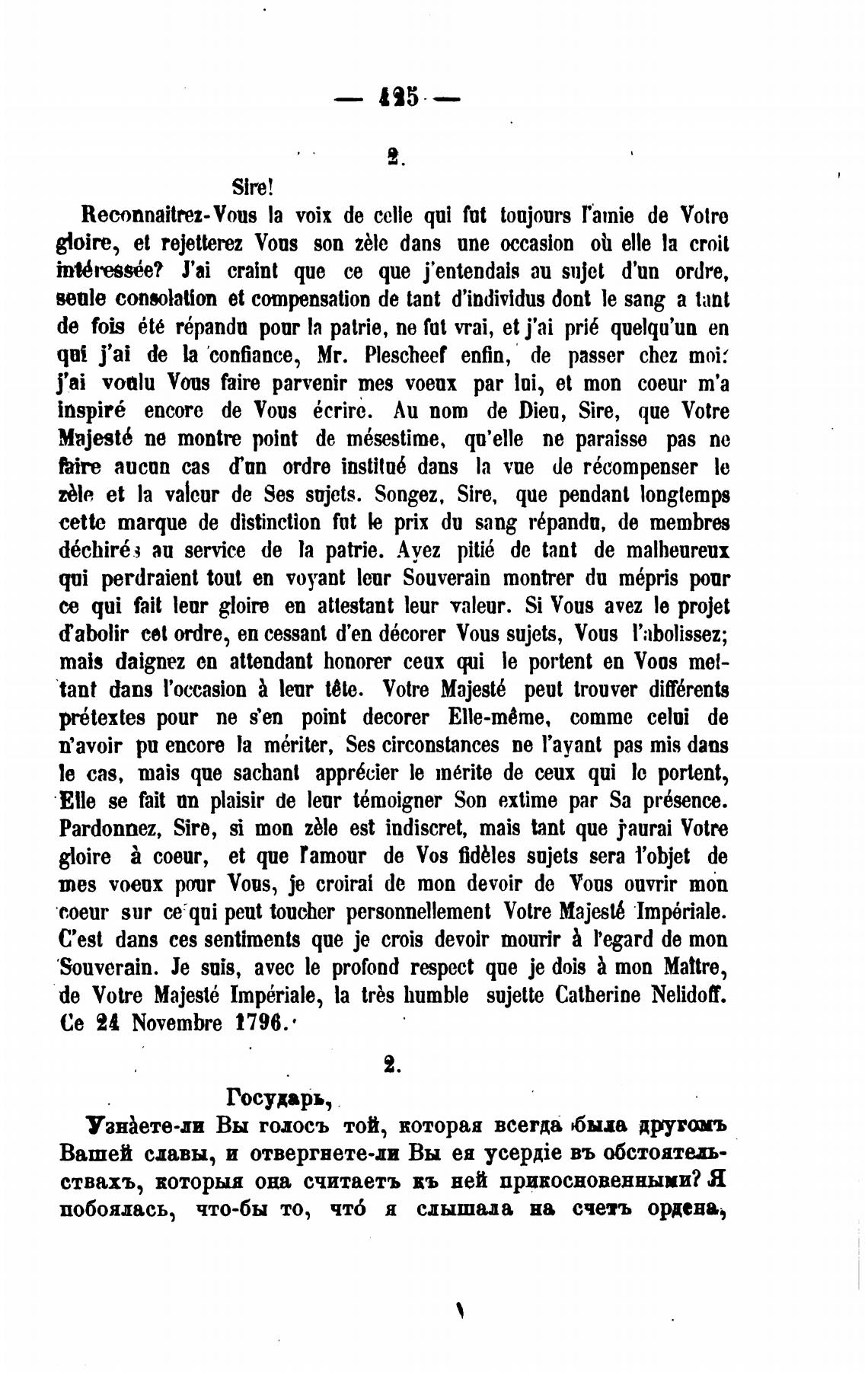 de Votre Majest6 Imp6riale, la tis humble sujette Catherine Nelidof.