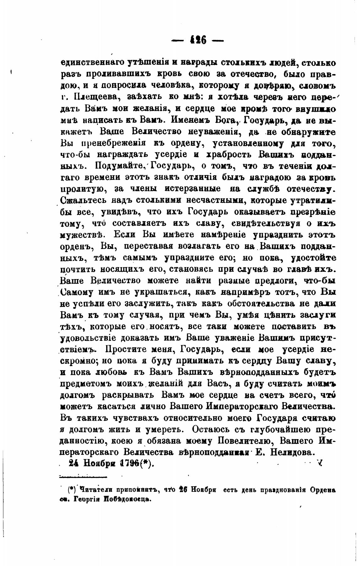дераторскаго Величества вјрноподданпя• Е. Нелидова.