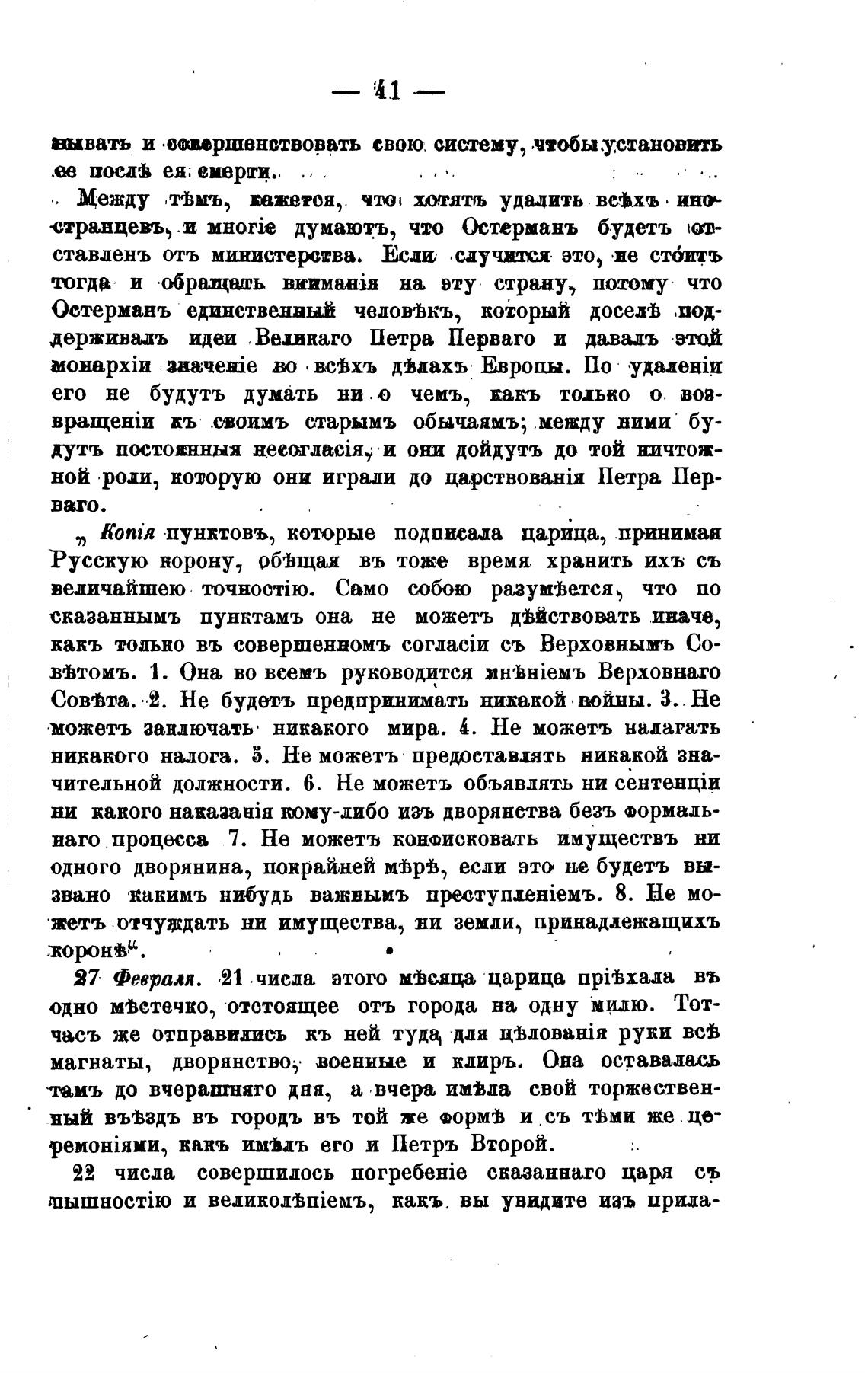 koniR пунктовъ, которые подписиа царица, .принимая