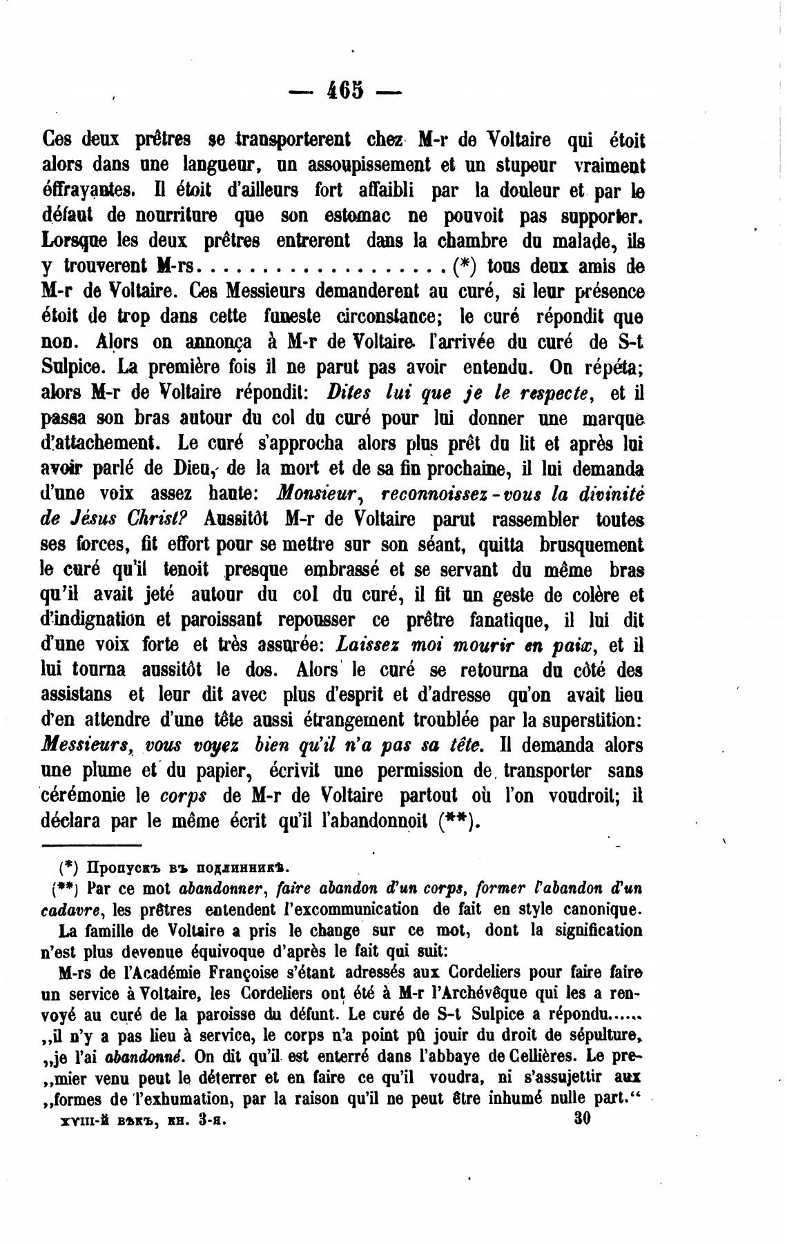 М-г de Voltaire. Сед Messieurs demanderent аи cur6, si leur prbsence