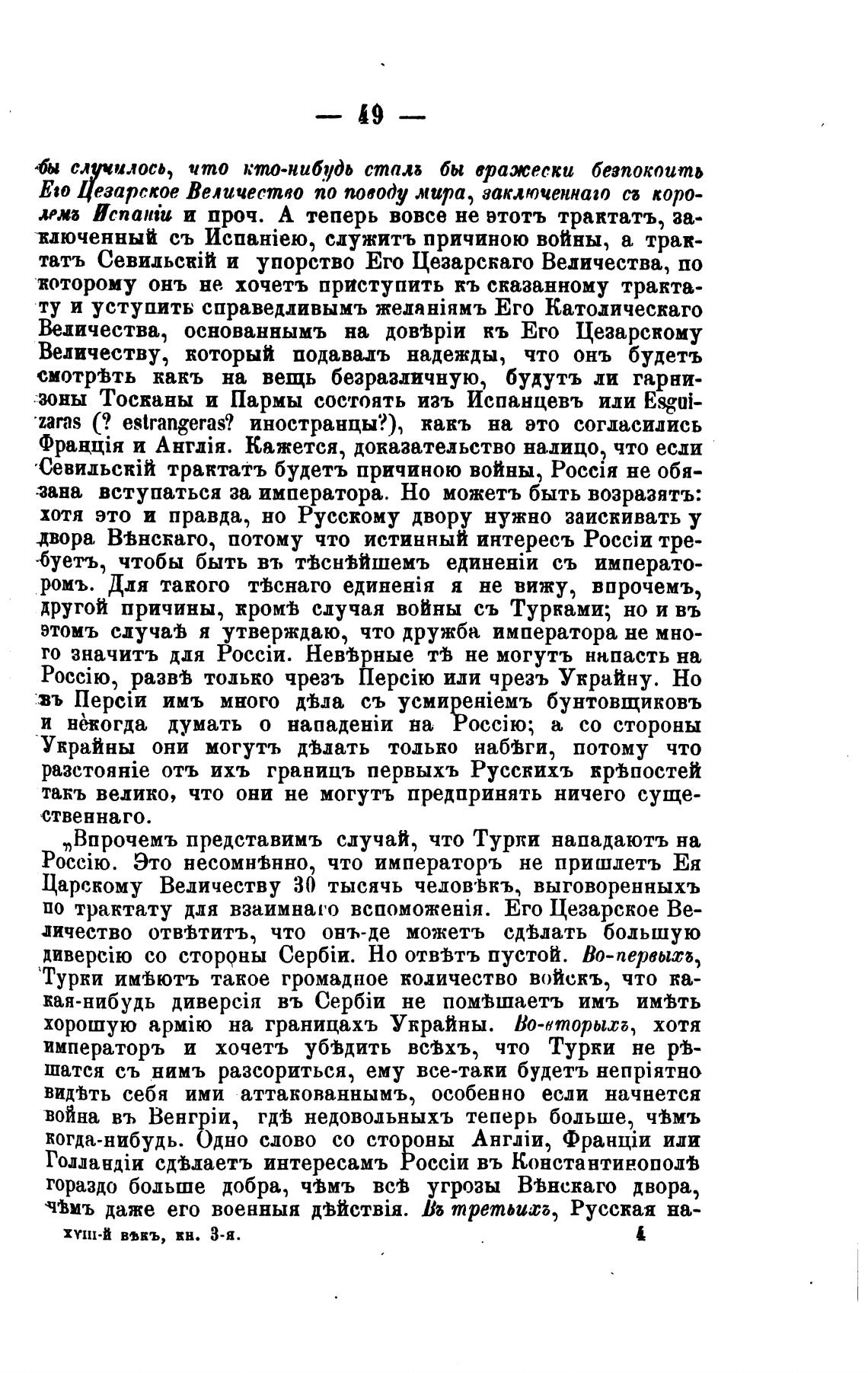 другой причины, кромв случая войны съ Турками; но и въ