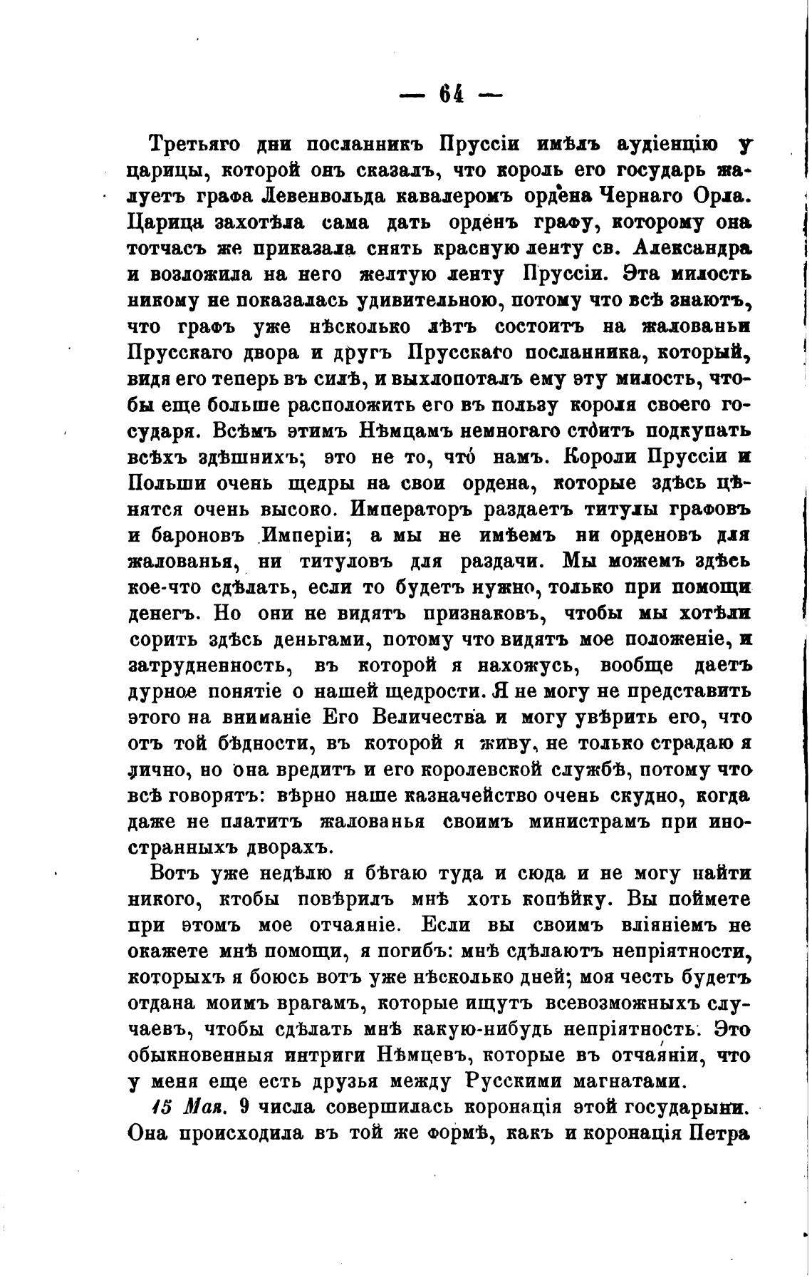 Царица захотВиа сама дать орденъ грату, которому она