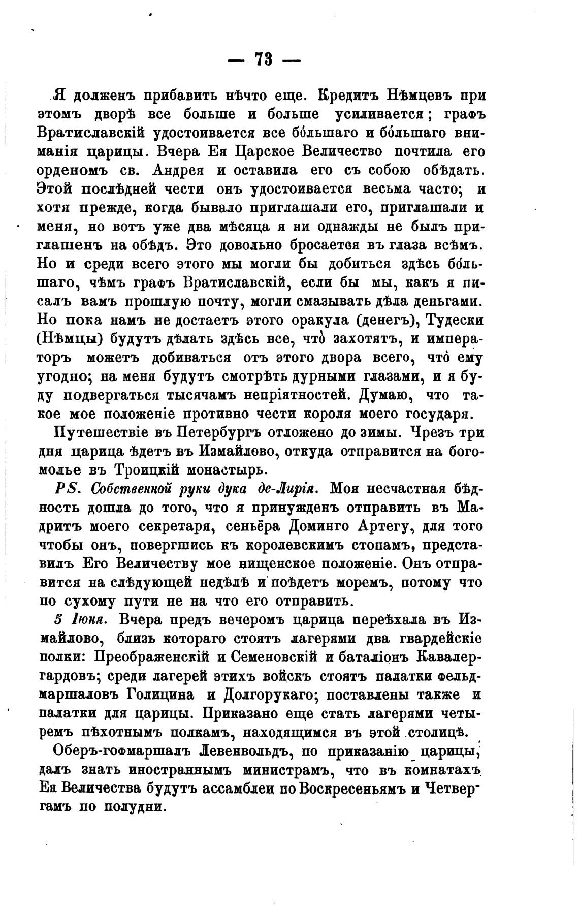5 1юня. Вчера предъ вечеромъ царица переВхала въ Из-