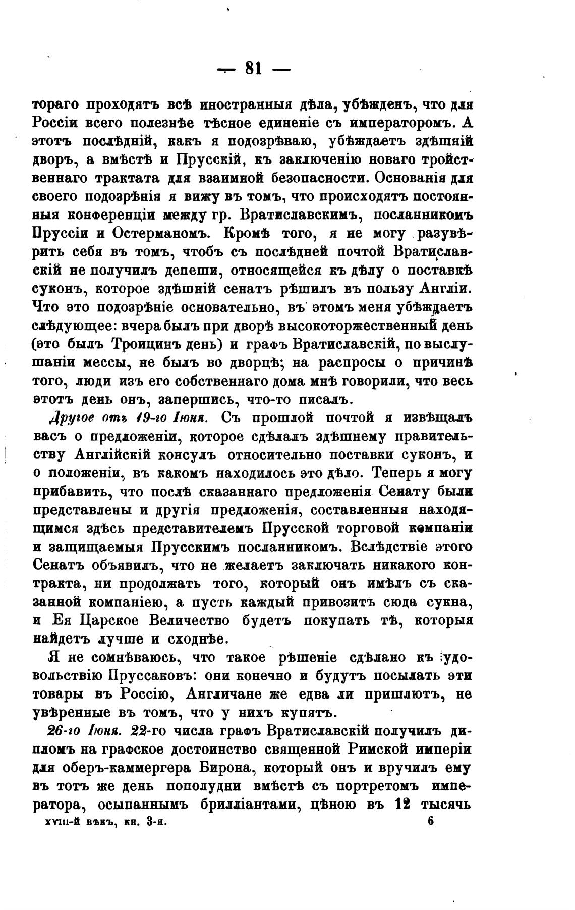 (это быль Троицинъ день) и граФъ Вратиславс1йй, по выслу-