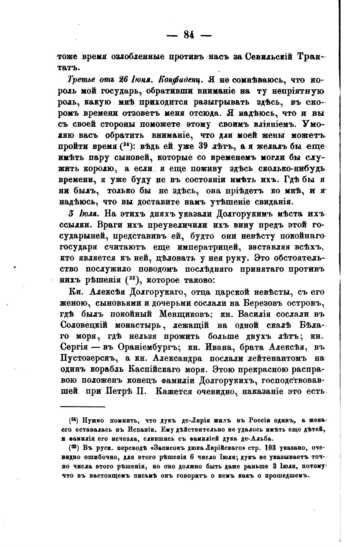 вою положень конецъ фамити Долгорукихъ, господствовав-