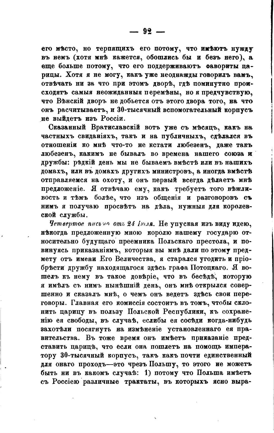 бр'ћсти дружбу находящагося здјсь графа Потоцкаго. Я во-