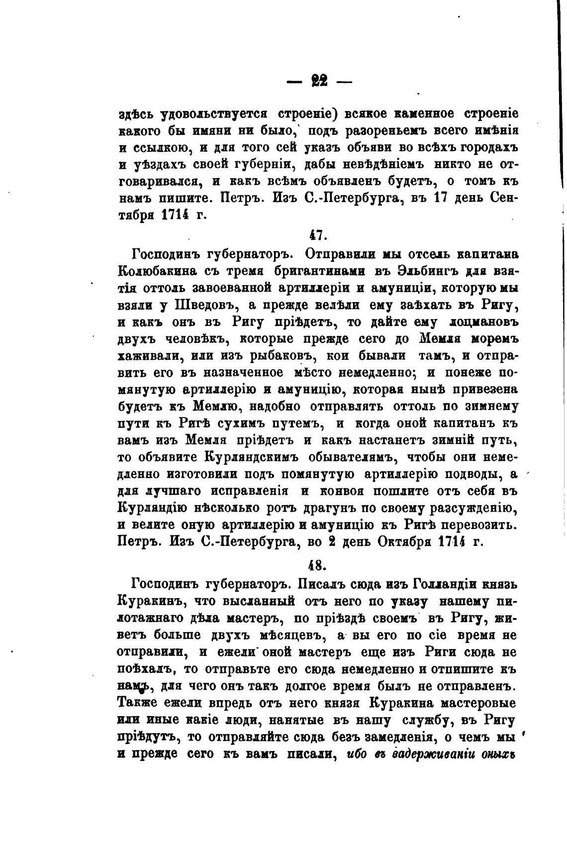 Петръ. Иаъ С.-Петербурга, во 2 день Октября 1714 г.